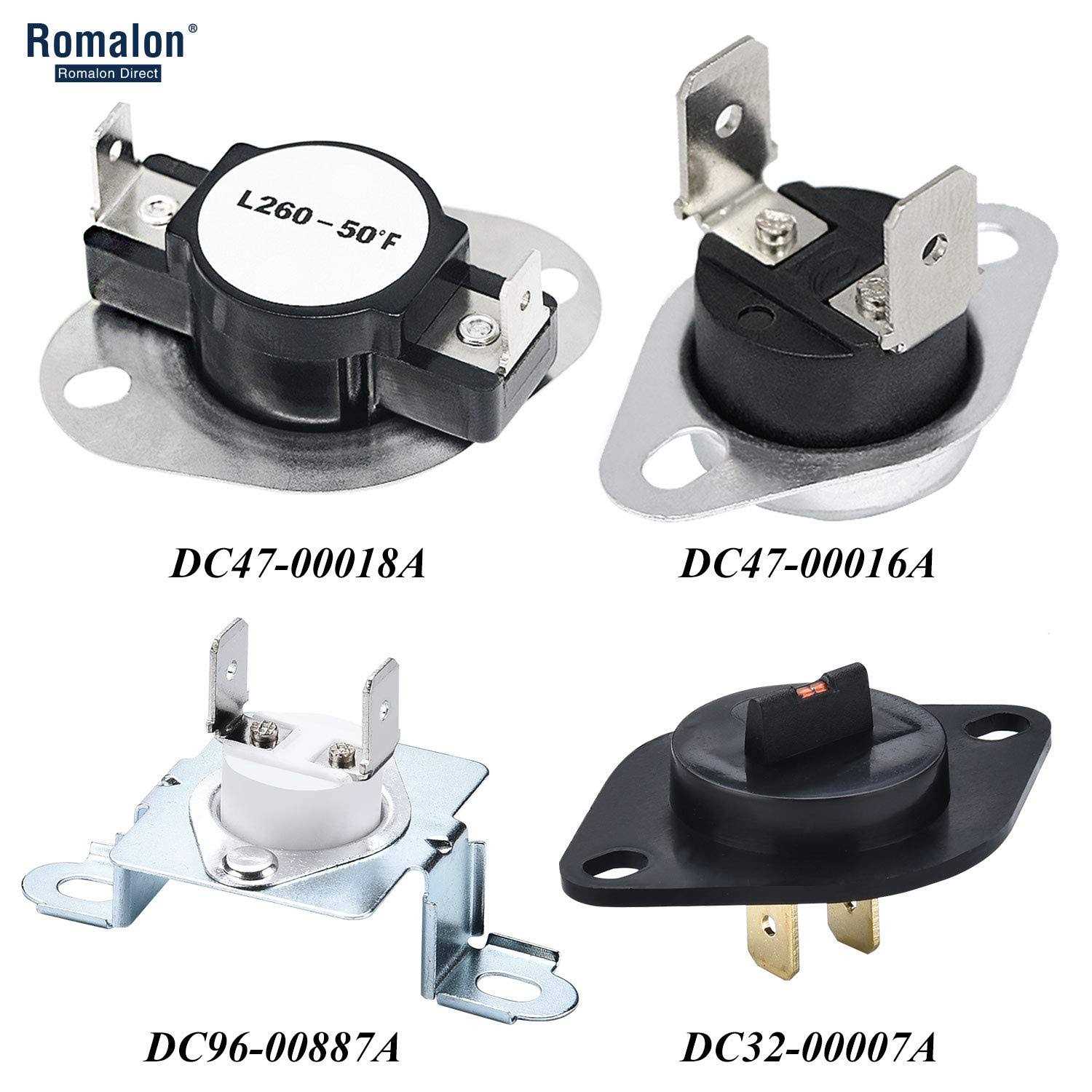 PART NUMBER: DC96-00887A & dc47-00018a dryer high limit thermal fuse, dc32-00007a dc47-00016a thermal fuse PACKAGE INCLUDED: 1 * thermal cut off fuse dc96-00887a, 1 * dc47-00016a thermal fuse, 1 * dc32-00007a thermistor, 1 * dc47-00018a dryer thermostat. REPLACEMENT PART #’s : dc96-00887a wp35001193 thermostat replaces 2074129 AP4207819 AP5966894 PS11741829 PS4276292; dc47-00016a thermal fuse replaces 2068545, AP4201894, EAP4205213, PS4205213; dc32-00007a thermistor replaces 2068429, AP4201716, PS2461163; DC47-00018A – Replaces 35001092, 1122485, AP4201898, PS2430930, EAP2430930. COMPATIBLE BRAND: Exact fit multiple models/brands (Samsung, Whirlpool, Sears, Kenmore, and Roper, etc). BUY WITH CONFIDENCE: For any reason you’re not completely satisfied, you can ask for a replacement or full refund. F (160 deg. C). Works Just 1 Time Because This Works Like a Fuse. /b br DC32-00007A is a resister that varies in resistance during the drying cycle to maintain consistent temperature. /b br DC47-00018A is a Thermostat Working in Temperatures Between 210.2 deg. F and 260.6 deg. F (99 deg. C and 127 deg.