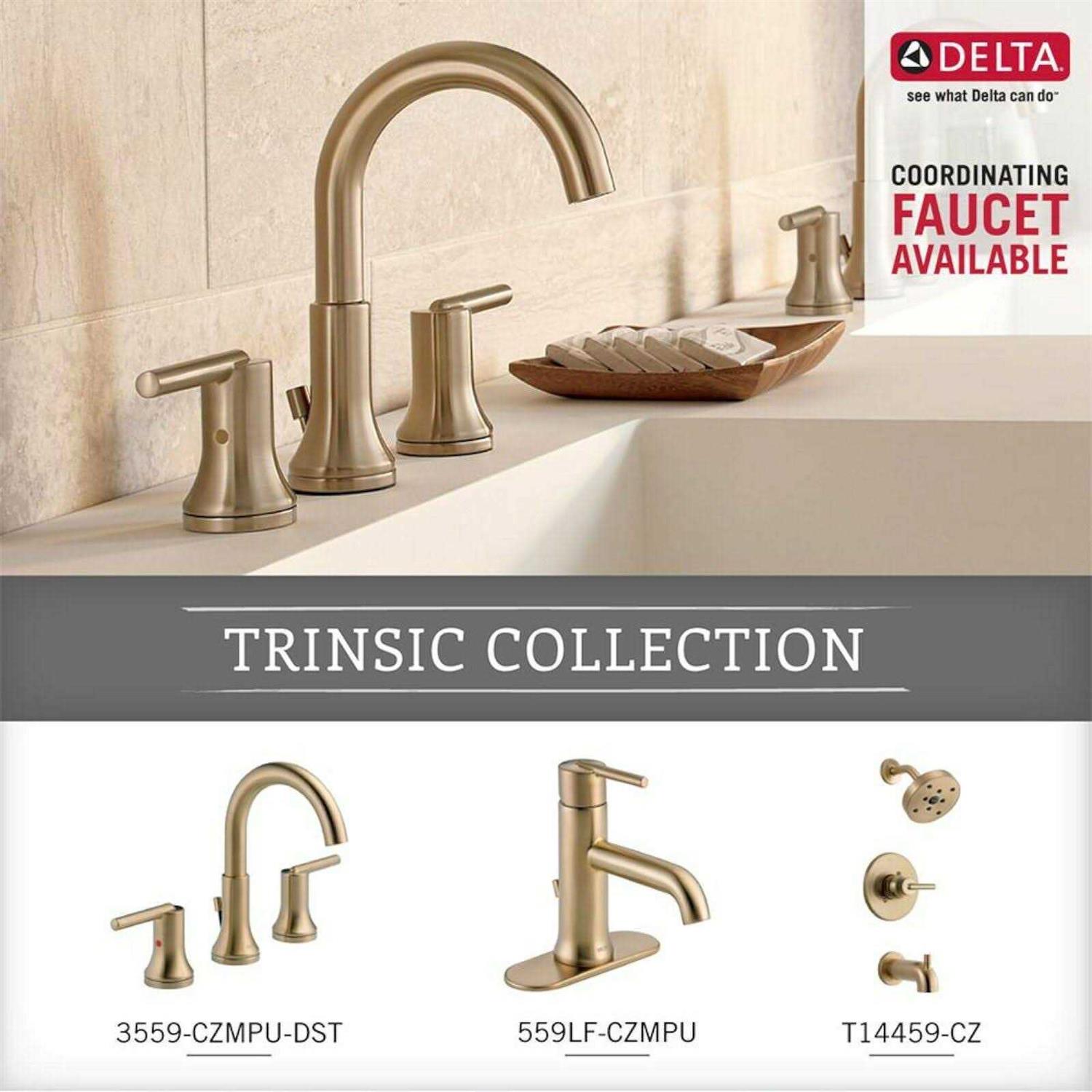Delta Trinsic Champagne Bronze Towel Ring can complete any modern bathroom with an elegant and sophisticated look, matching a variety of bathroom styles and decors. This towel ring can make the best use of your bathroom space, providing easy and convenient access to towels for both you and your guests to utilize. It can also be a space to hold clothes and robes as you are showering. Great to place right outside of showers, beside a sink, and above your toilet. With bright tones, champagne bronze is undeniably modern with strong contrast, but it can complement traditional or transitional spaces just as well when paired against warm neutrals for a rustic feel similar to cast iron. The sleek elegance of modern design is embodied in the Trinsic Collection.