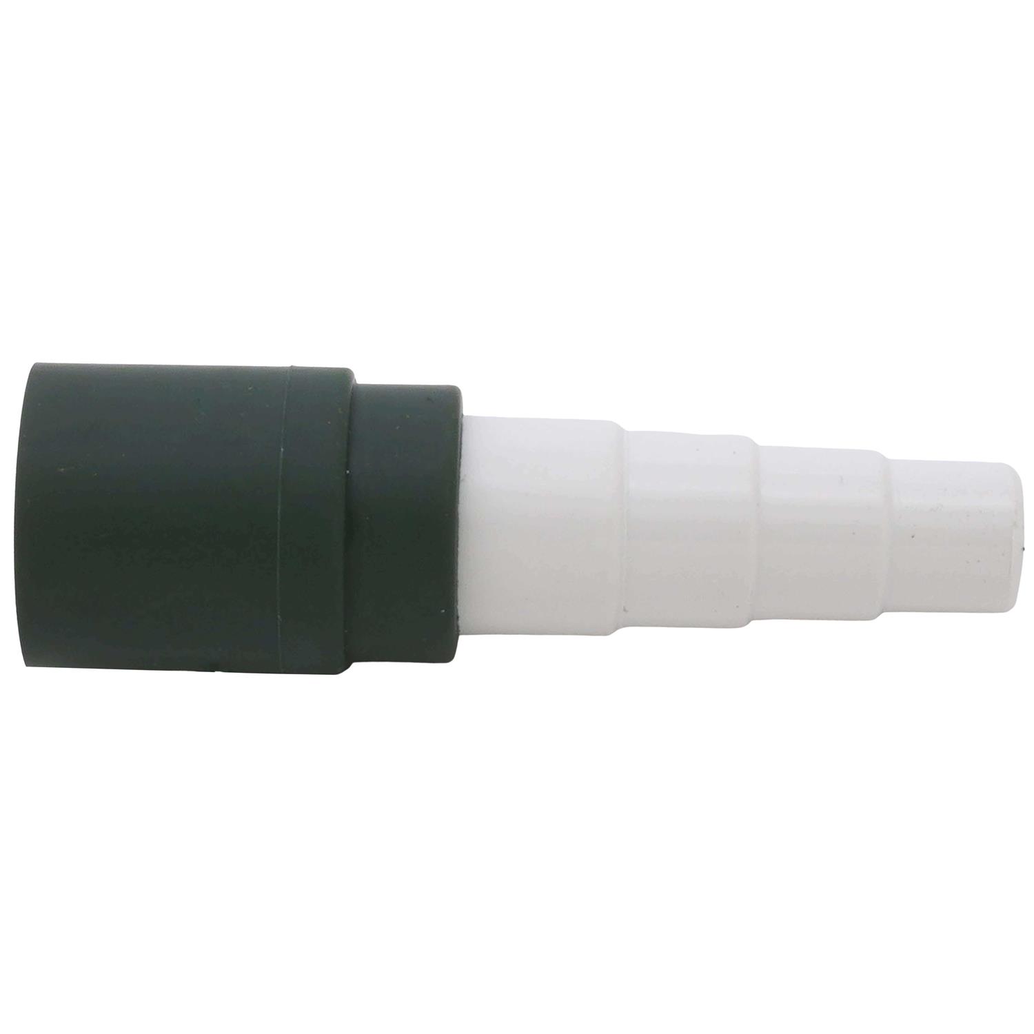 This mini split drain line adapter has stepped end dimensions making it adaptable to various drain line tubing sizes. The stepped end dimensions are 14mm, 16mm, 18mm and 20mm. The adapter has rigid sides and a flexible green end. It is for use with 3/4″ PVC pipe size.