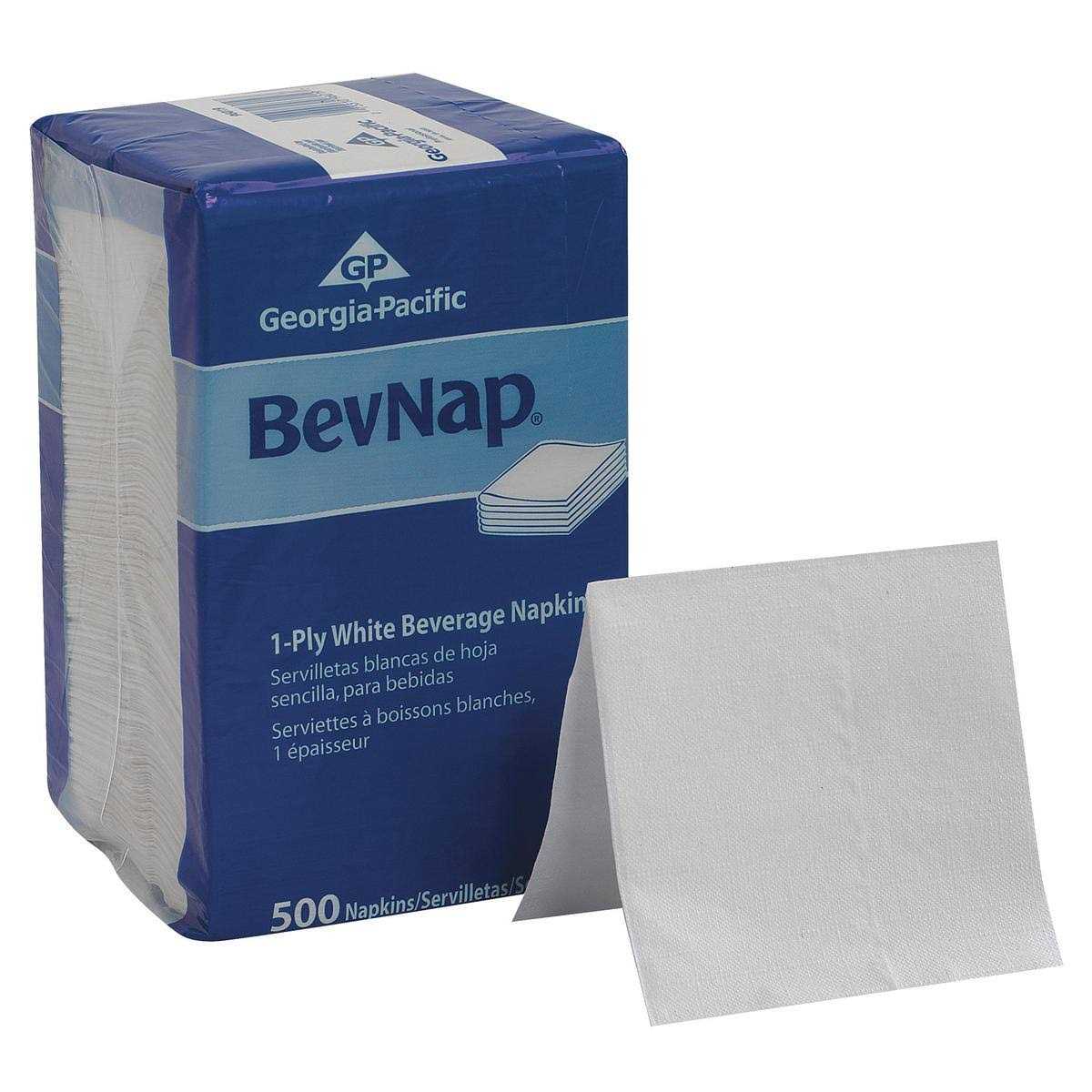 Georgia Pacific Beverage Napkins, Single-Ply, 9 1/2 x 9 1/2, White, 4000/Carton