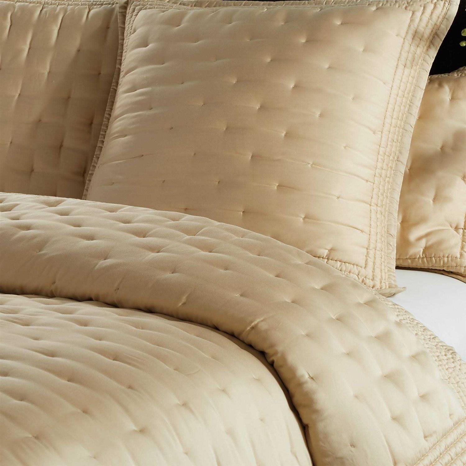 Transform your bedding experience with the Essential Silk Quilt. Lay under this lightweight, soft to the touch quilt that redefines luxury. The tack stitch offers subtle texture and dimension as this quilt drapes over your bed. With a timeless design this quilt will translate well from season to season. On its own this is your essential for a restful night. If you dare to indulge, this silk quilt layers well with your Donna Karan bedding favorites. Available in gold, platinum, ivory, charcoal, or black to complement your bedroom style.