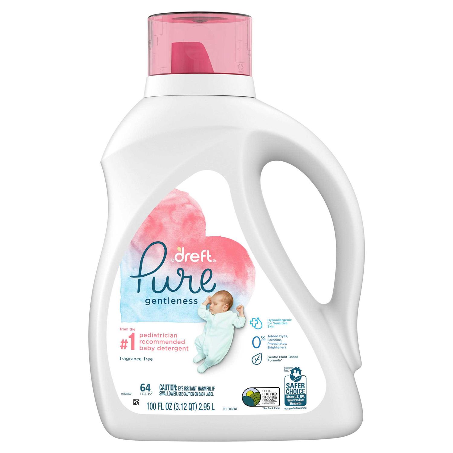 Dreft Pure Gentleness Liquid Baby Detergent, Fragrance Free