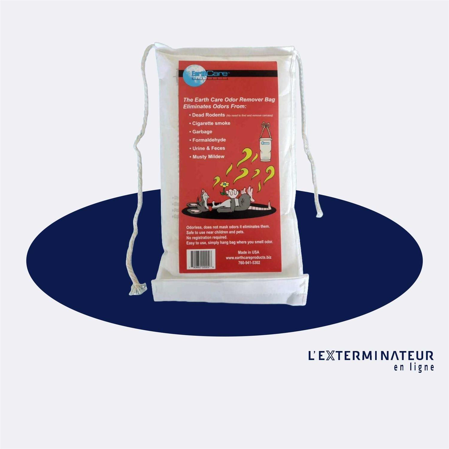 Used by Pest Odor Control Professionals to remove dead rodent odors, urine and feces odors, skunk odors, orthene and other chemicals as well as cigarette smoke odor. Earth Care Odor Removal Bags do not have to come into contact with dead rodent or odor causing agent and works even if carcass is not removed. Bags are easy to use and last an average of 3-4 months in use and contains no chemicals, toxins or fragrances. Simply place the pest odor control bag near the odor and in 24 hours the odor will be gone. Earth Care does not mask odors it removes them. Its contents are bio-degradable, non-flammable, non-toxic, safe around children, pets, & mother earth. Earth Care Odor remover Bags removes the odor even if carcass is not removed Absorbs odors like a sponge no fragrance, no cover ups To Use: Place a ag in each room that has an odor. If you need pest odor control in an attic or basement, place additional bag in those areas as well. In 24 hours the odor is gone (98% of the time) Last 3-4 months in use or indefinityly in plastic wrap.