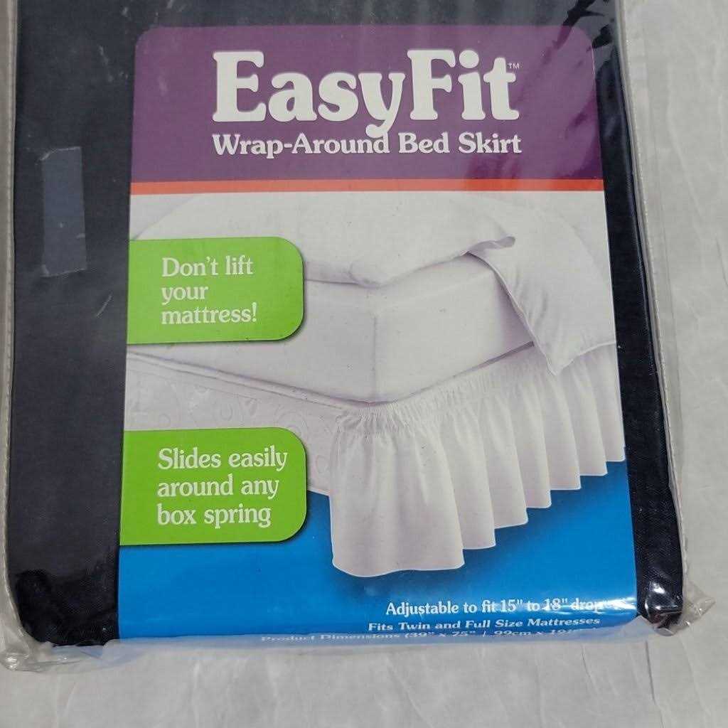 Changing your bed skirt has never been so quick and easy! This beautiful bed skirt adds the perfect touch of charm and finished style, without having to lift a heavy mattress. No more back-breaking lifting. The easy-stretch design allows it to slip effortlessly over your mattress and around your box spring. The Easy Fit bed skirt’s innovative design and versatile style adjusted to fit any bed size and offers a 18” drop. Hide unsightly box springs and bed frames with the classic solid style. Available in Twin/Full and Queen/King. Poly/Cotton Blend. Machine washable.