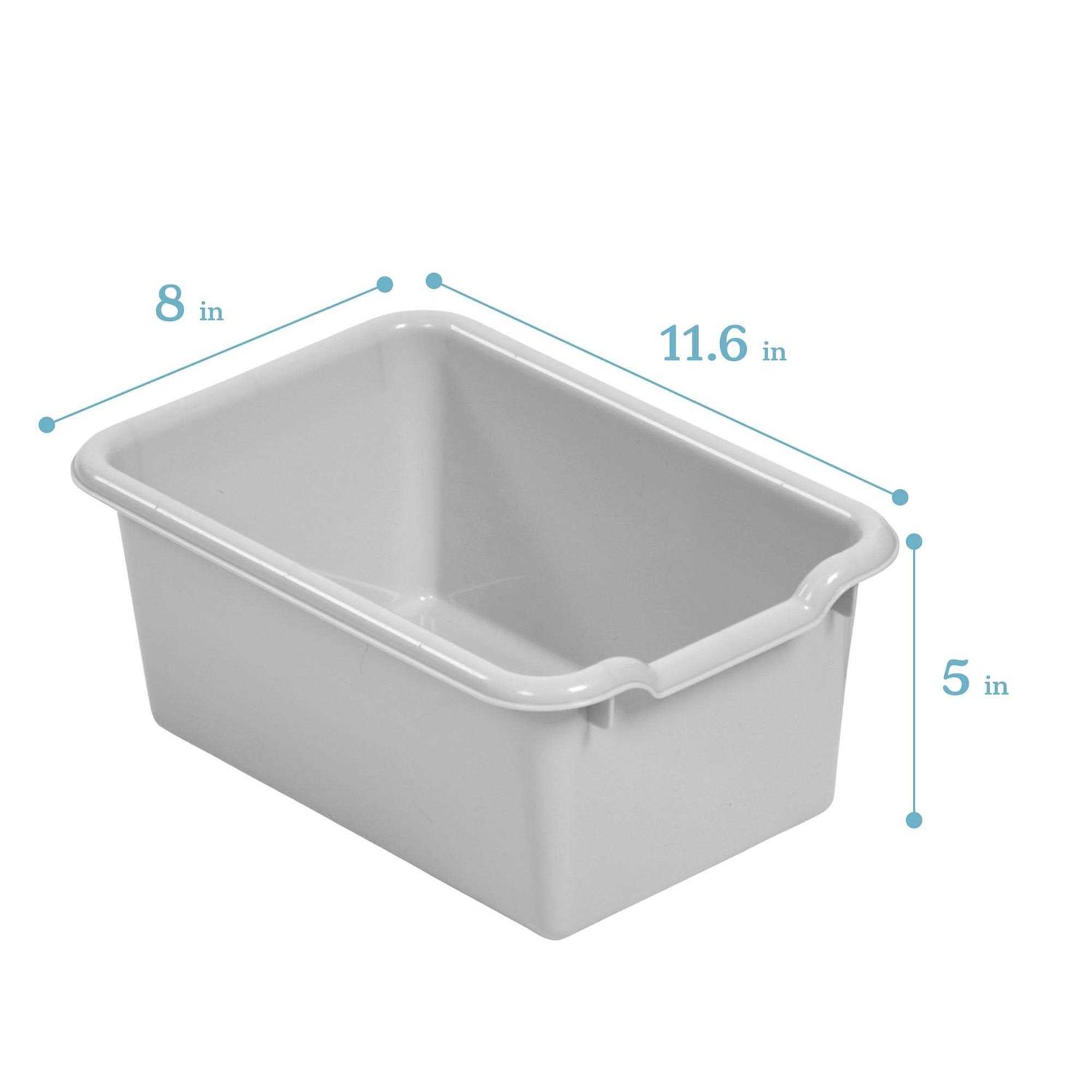 Keep your classroom and home organized, tidy, and efficient with ECR4Kids Scoop Front Storage Bins. The sturdy plastic bins are designed for everyday use to keep small items contained off the floor. Teachers, educators, and parents can utilize bins to store books, toys, manipulatives, and games. The open bin design displays and provides easy access to contents. Organize stories and label bins by reading level, theme, or holiday, encouraging children to independently select their favorite story and clean up during playtime. Personalize trays in classroom cubbies for children to store art projects, individual items, homework, and more. The Scoop Front Bins provide a flexible storage solution with endless possibilities for use from the garage to the kitchen pantry, or nursery. Durable plastic bins feature rounded edges, an easy-to-grasp scoop front handle, and a curved interior to simply remove contents. Lightweight bins are easy to pick up and carry, transporting from a storage cabinet to a play space. Bins nest to save space, and built-in stack supports prevent locking when empty. Use as standalone storage or pair with ECR4Kids storage lockers, cubby units, or tray cabinets; sold separately.