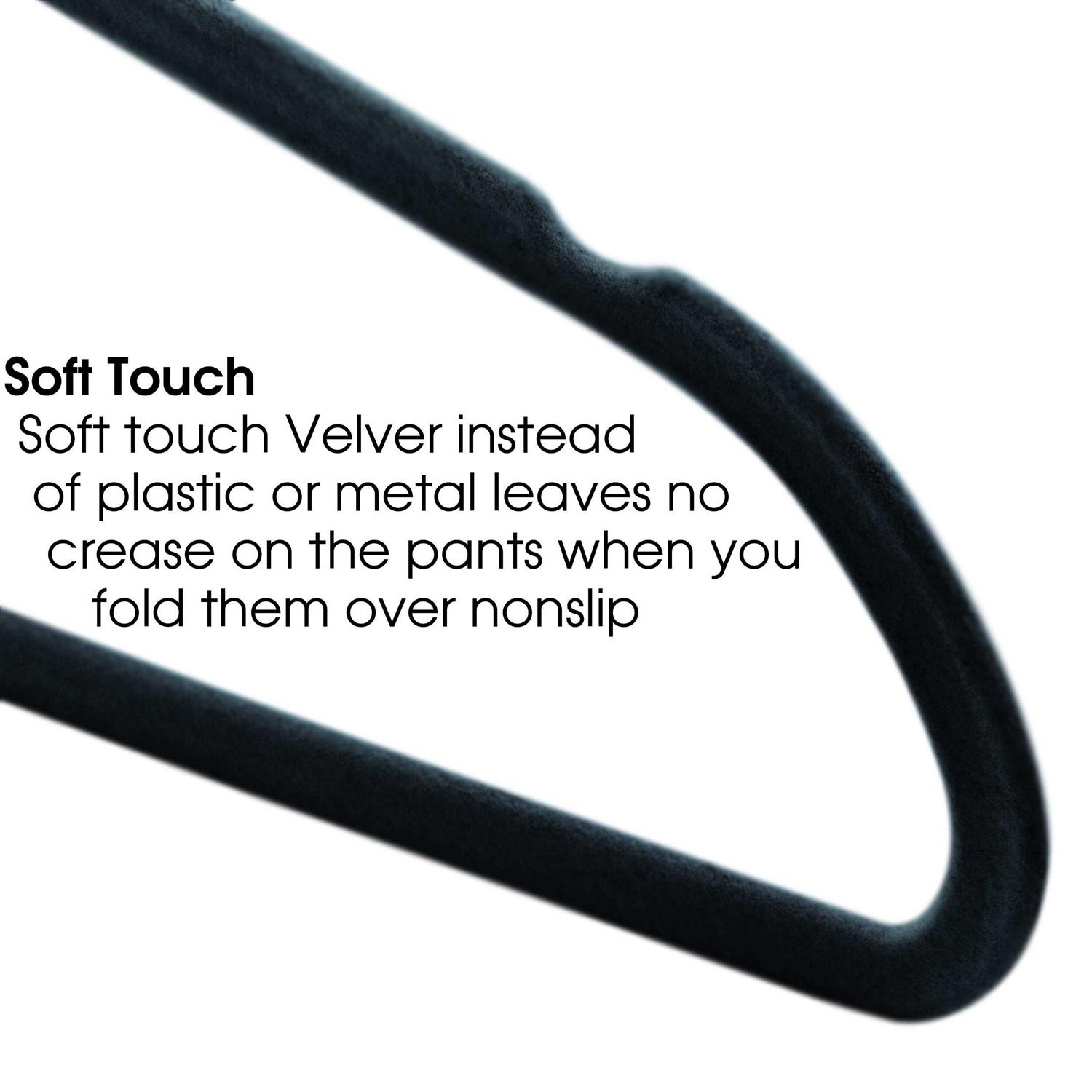 The Elama Home flocked velvet hangers are durable and sturdy, designed to hold large and heavy pieces of clothing. It’s stronger and much more lighter than wooden hangers, but much sturdier to hold heavier and bulkier clothes without bending. These hangers are a great choice for suits, coats, skirts, shorts dresses, sweater, pants, belts, ties, shawls, thin strap shirts, tanks and women undergarments, camisoles and all your winter clothes.The Elama Home flocked velvet hangers feature a non slip and supreme soft luxurious velvet feel instead of plastic or metal. It holds clothes without falling or sagging and leaving your clothes crease and wrinkle free. The contour shoulders prevents widening of the neck and clothes from slipping off the gentle yet firm non-slip surface hanger. Flocking also does not shed or fade onto your clothes, leaving your clothes looking as fabulous as the day you hung them. Why do our hooks swivel? Because each Elama Home flocked velvet hanger has a nut at the bottom of the hook so they can rotate 360 degrees by a simple twist without drop out. The designed swivel hooks enable you to sort through your clothes easily no matter which direction they hang. The swivel hooks are securely attached to the clothes hangers, so you can hang heavy clothes and the hooks will not snap off or break.The Elama Home Flocked Velvet hanger have a 0.2″ thickness, making these velvet hangers slim and sleek while you double maximize and organize your closet space.