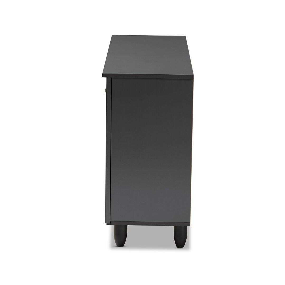 Keep your shoes organized and out of sight with the Winda cabinet. Featuring a stylish contemporary design and dark grey finish, the Winda is easy to coordinate with any style of decor. Three doors conceal four shelves with storage space for up to 12 pairs of shoes. Slits are embedded within the doors to enable air circulation and prevent mold growth on your shoes. The Winda cabinet is made in Malaysia and requires assembly. 26″H X 44″W X 13″D