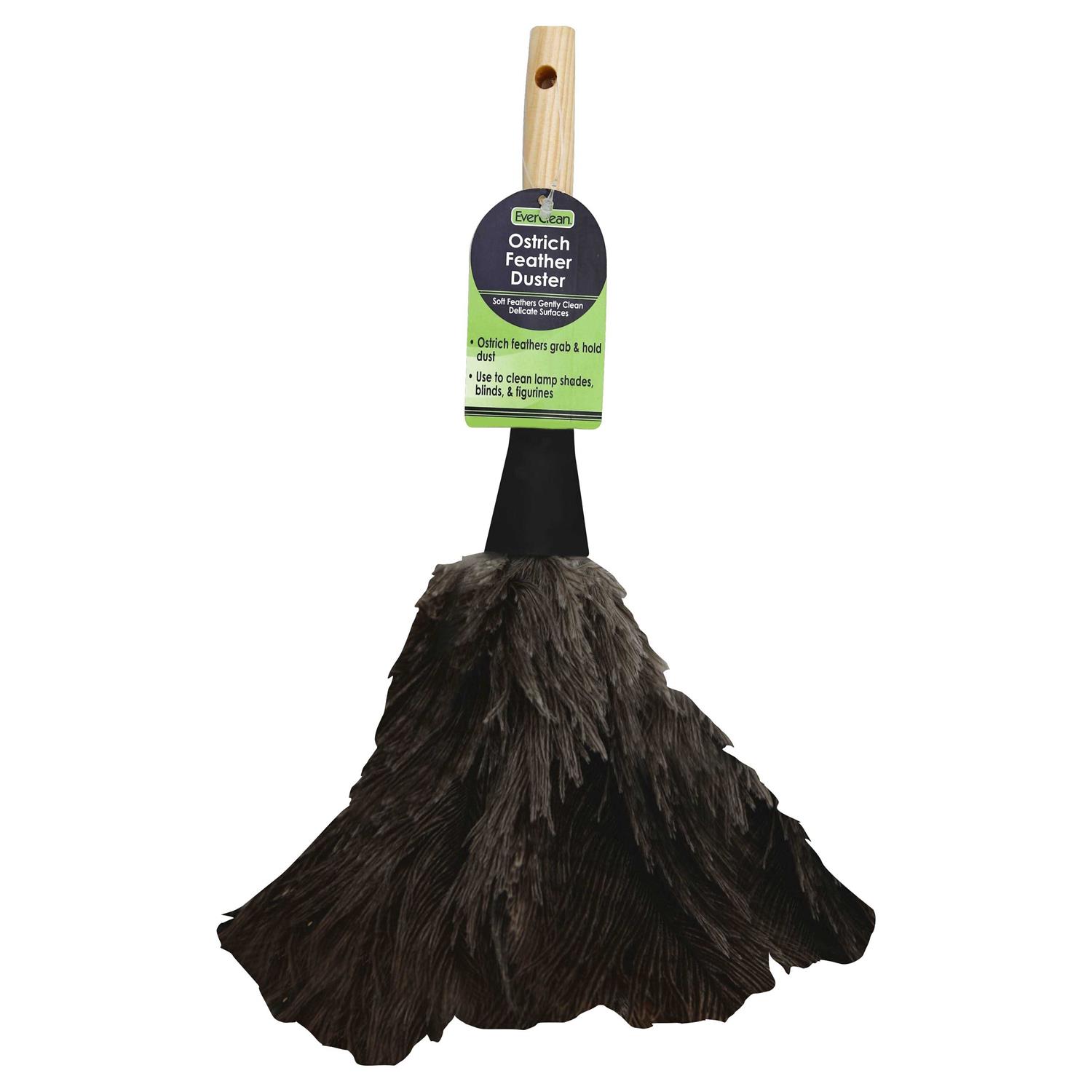 Keep surfaces in your home clean and dust-free with this EverClean Ostrich Feather Duster. It has a strong handle made of wood with an ErgoGrip for sustained comfort and control, as well as a built-in hanger feature for convenient off-the-floor storage. The 100 percent natural feather duster grabs and holds dust, making it ideal for dusting contoured, intricate and delicate items. You can use it to clean lamp shades, blinds, collectibles and more. Ostrich feathers actually hold dust until shaken out and can be washed in warm water and air-dried. The EverClean Ostrich Feather Duster also attaches easily to an extension pole (sold separately) for extra reach. EverClean Products cleaning tools make any dirty chore easier.