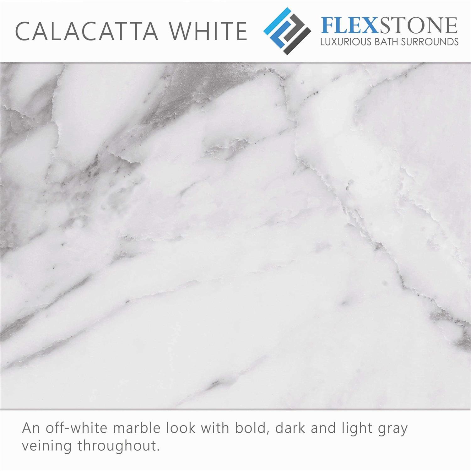Expand your storage space for soap, shampoo and other bath needs with an extra FlexStone corner shelf. Each shelf comes with an easy-install metal bracket and a clamshell-style FlexStone wrap. Perfectly complements FlexStone wall surround colors High-definition imagery looks just like real stone Composite polyvinyl shelf is lightweight and easy to install Add extra storage space to your bath or shower surround Clamshell-shaped shelf adheres over bracket with adhesive Easy add-on for any FlexStone bath or shower surround kit Metal bracket included for easy installation and added support Made from composite polyvinyl, the same material used to make FlexStone wall panels Brighten and highlight your wall space with this FlexStone Corner Shelf Niche in Calacatta White.