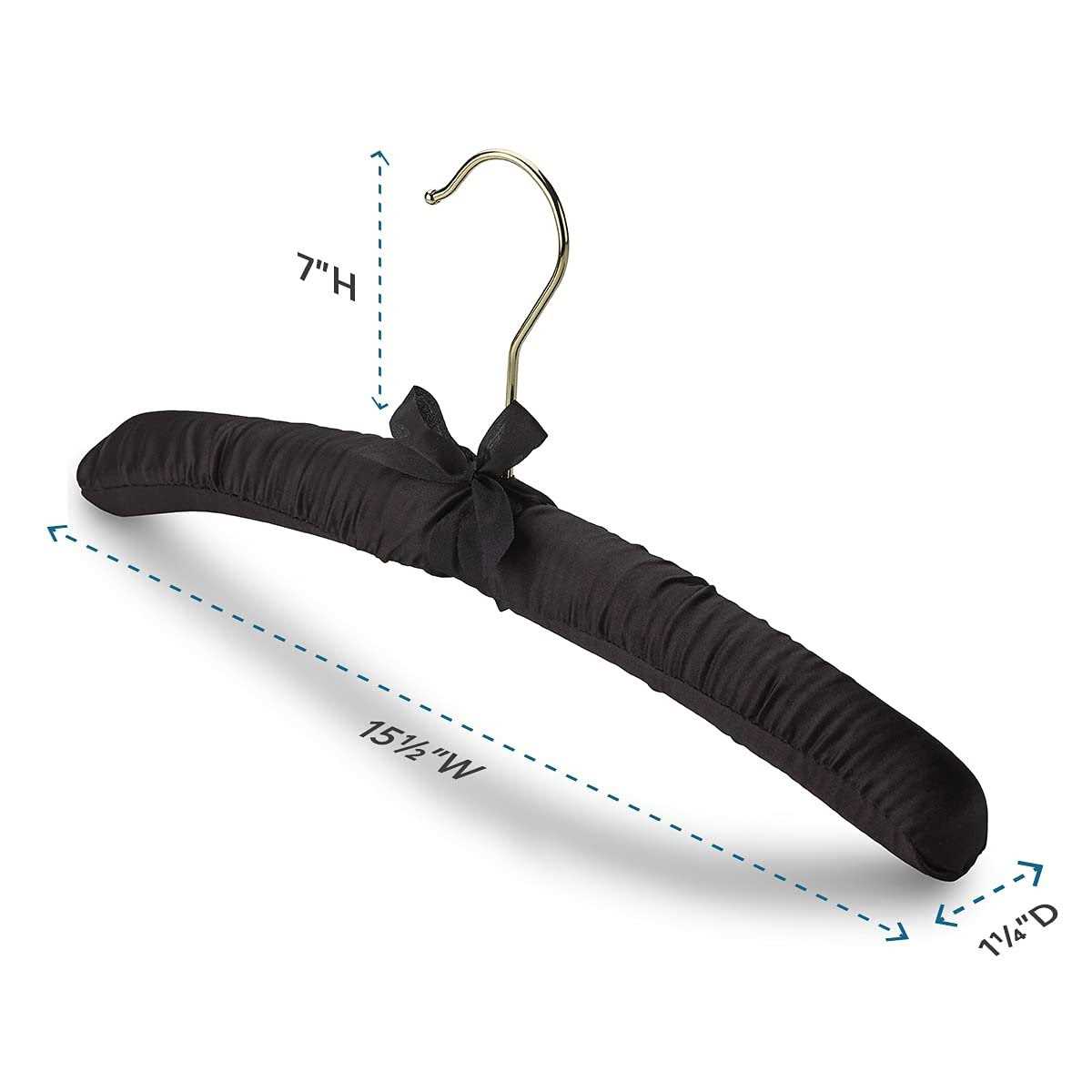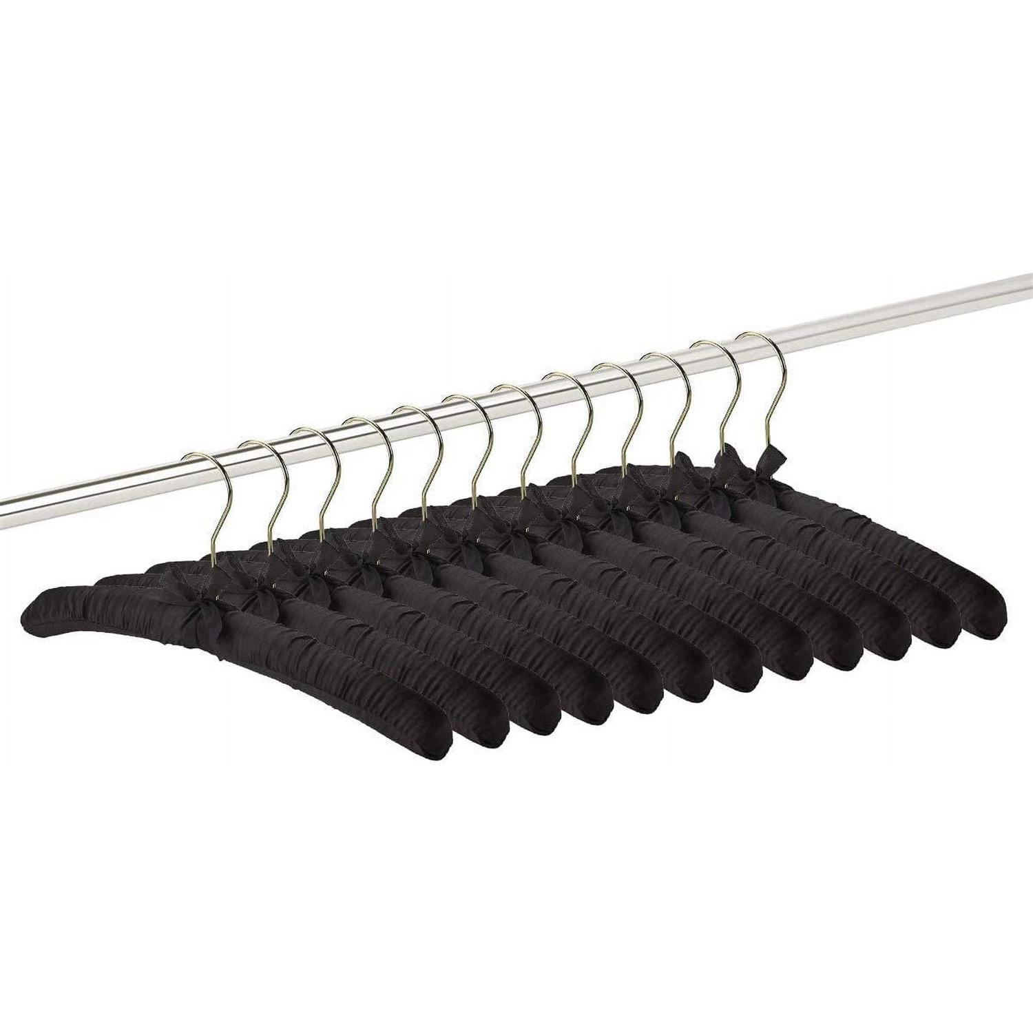 Florida Brands Satin Padded Hangers, Black with Gold Hooks, 12-Pack