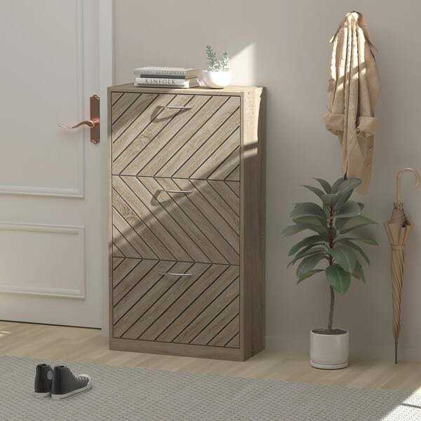 FUFU&GAGA Natural Color 18-Pair Shoe Storage Cabinet with 3-Drawers and 6-Compartments and Wood Grain