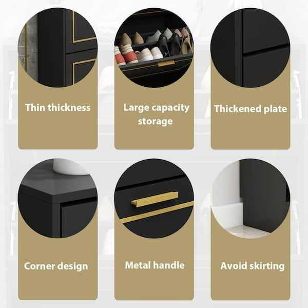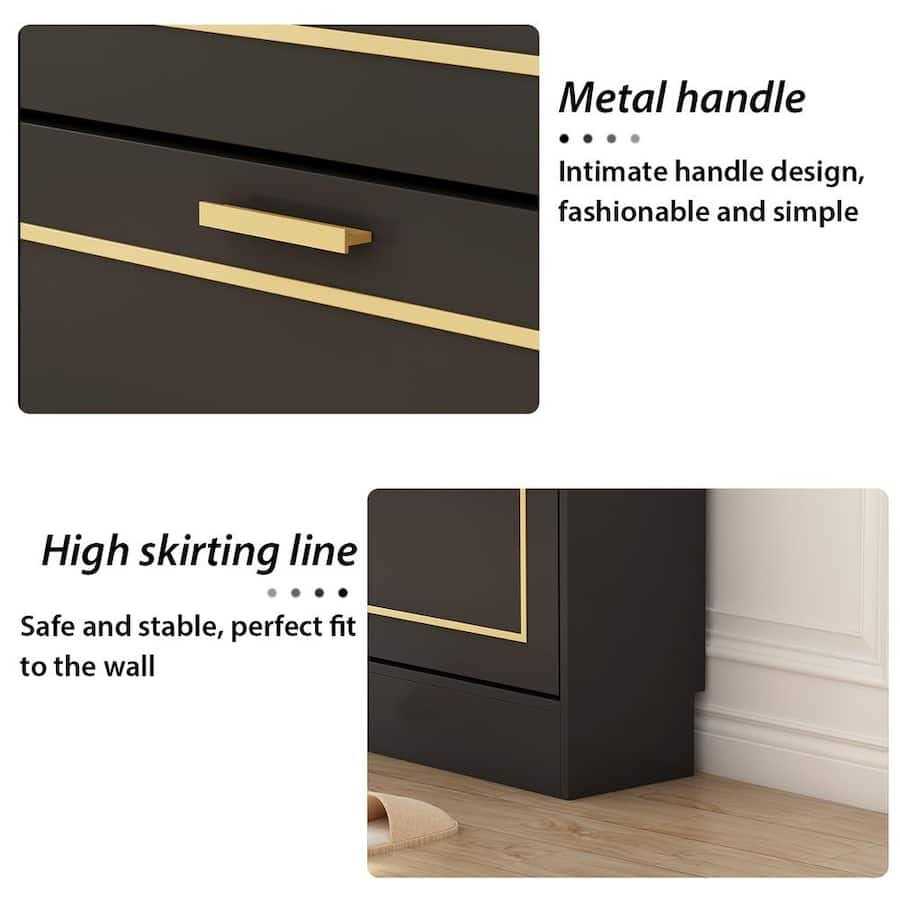 FUFU&GAGA Wood Shoe Storage Cabinet Shoe Rack Storage Organizer Black Gold with 3-Drawers, 6-Foldable Compartments Max 24-Pairs