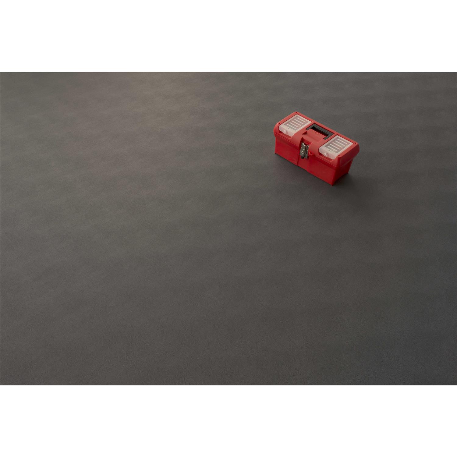 The G-Floor Garage Floor Cover/Protector features a levant design that offers an attractive, smooth leather grain appearance in slate grey. The 5 ft. x 10 ft. size covers 50 sq. ft. and is ideal for protecting floor areas in workshops or underneath motorcycles, ATVs, mowers, snowmobiles and golf carts. It is made of a tough, specially formulated 100% polyvinyl material that protects floors and resists common fluids and contaminants such as oil, anti-freeze, brake fluid, gasoline and even battery acid. Helps prevent concrete deterioration and provides an economical and easy solution to cover old cracked and stained floors. Commercial grade, Tough enough to be used in the garage, attractive enough to be used anywhere: basements, laundry rooms, trailers, vehicles, workshops, warehouses, exercise rooms, offices and utility rooms.