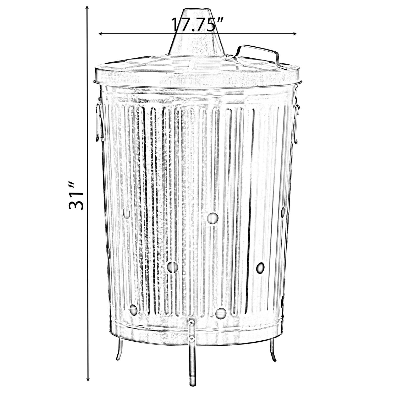 Gardenised QI004569 Silver Indoor and Outdoor Galvanized Metal Garden Incinerator Can, for Yard, Home, Patio, and Backyard