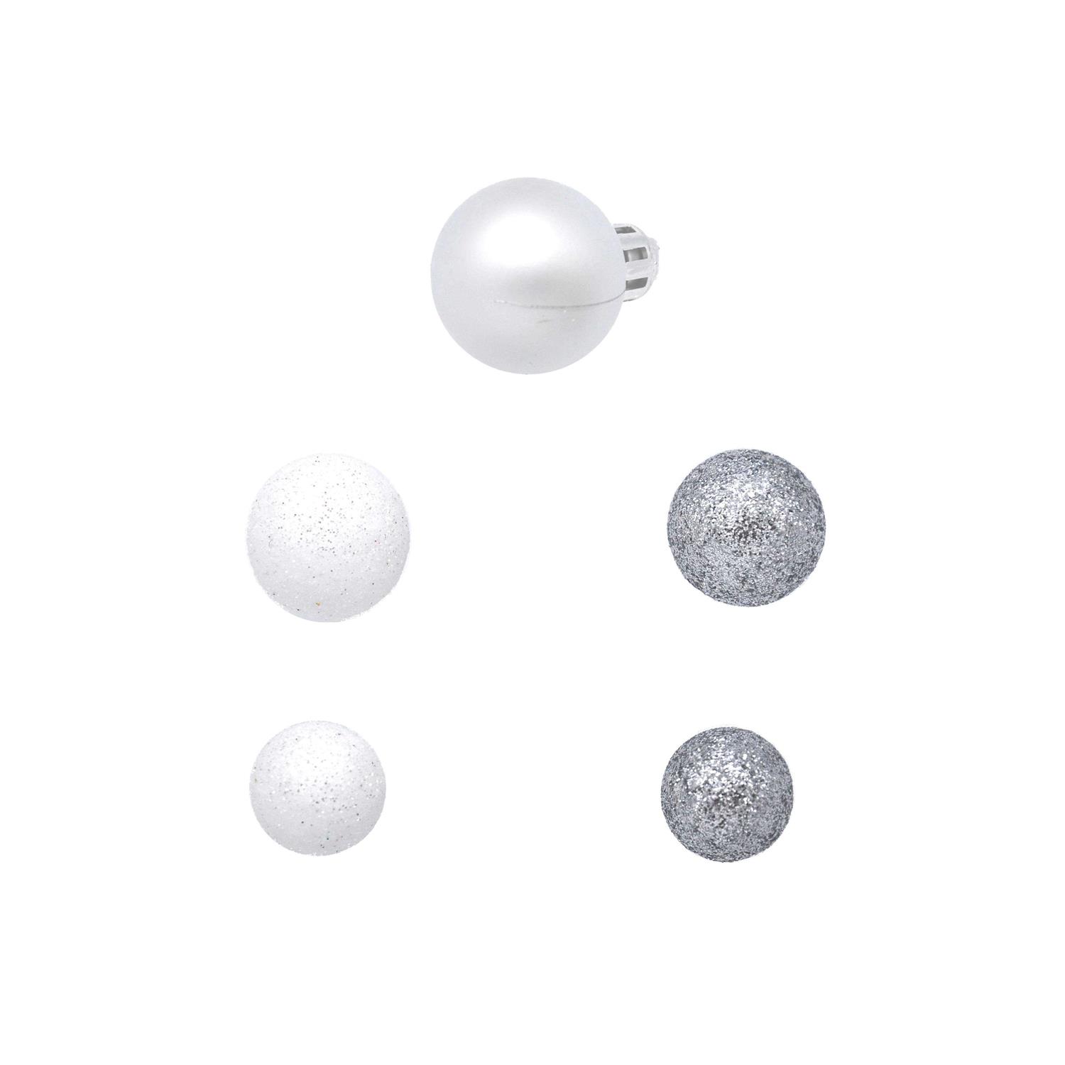 This glittery silver and white ball filler is perfect for lending a glamorous touch to your Christmas dcor. Add it to a clear bowl with other colorful accents to display on your table or counter.