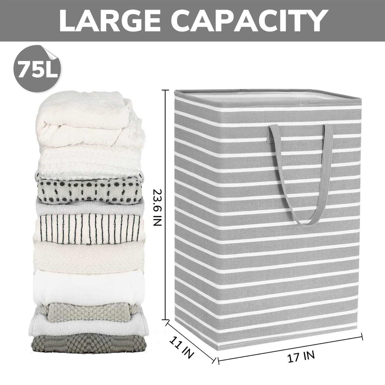 These hampers for laundry have waterproof polyethyene coating inside. Have three large laundry baskets to separate whites, darks and towels for sorting and use it for laundry in the bathroom, bedroom, nursery room, student’s dorm [Large Firm Handles & Portable] Large laundry baskets with handles are lightweight and portable to hold a max of 80 lbs. Move around the house or trip to the basement, or laundromat easily. The tall laundry hamper can organize the towels, family clothes, baby toys, bedding, extra blankets, and pillows in the living room [Stay Upright & Collapsible Design] Foldable laundry baskets don’t take up much room and stay upright. The grey laundry basket organizer matches well with your room decor. When in not use, you can fold collapsible laundry baskets down and put these in the laundry room or bathroom storage cabinet [Reshape & Clean Note] The square laundry basket can get the proper shape and stay upright while filled with dirty clothes. No support for machine wash. You can stuff it with clothes or blankets for days to reshape it. /br – Cleaning: No support for machine wash. Use a damp towel to clean it. /br – Storing: This collapsible laundry basket can be folded up when not in use, does not take up space. /br /br