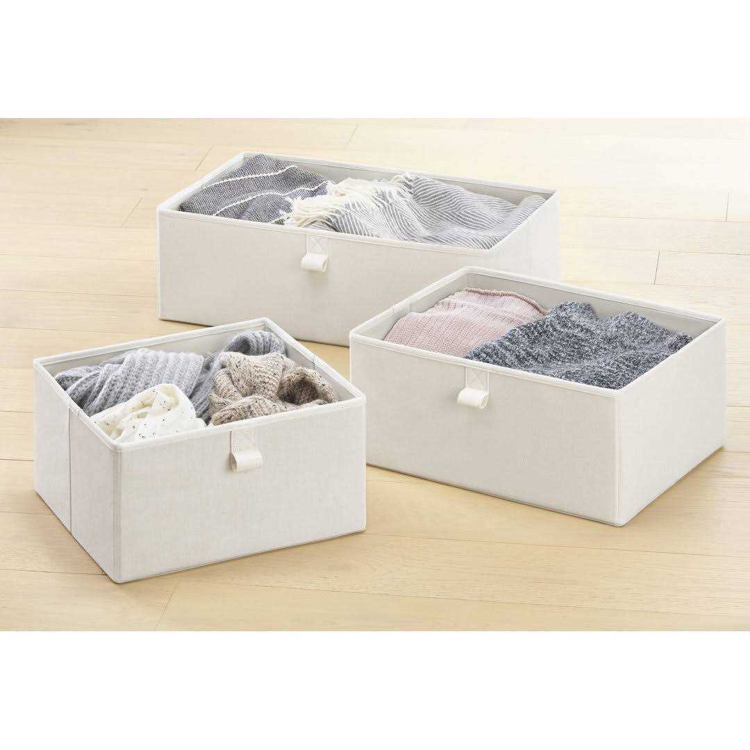 The Grove Collection open-top bins simplify storage through easy access. Available in small, medium, and, large sizes, the Grove Storage Fabric Bin Ivory easily into shelves and keeps your closet neat. The small bin is perfect for scarves and accessories, the medium bin for throws to t-shirts, and the large bin for sweaters to blankets.