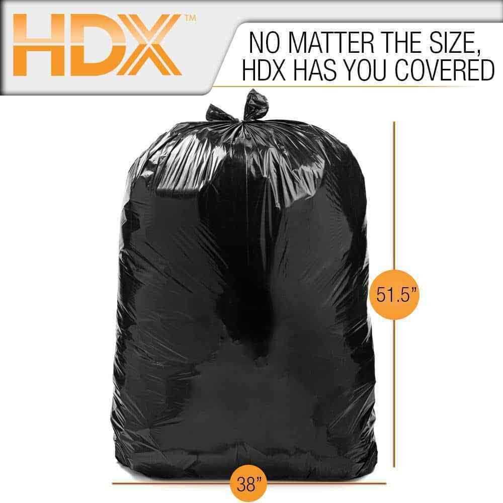 Accommodating all your trash needs, the HDX Extra Large 50 Gal. Black Trash Bags are made with a premium blend of high-quality plastic for high performance. These bags are ideal for residential and commercial use and are the perfect solution for cleanup, storage and waste disposal. They are wide enough to fit in 45 to 55 Gal. trash cans.