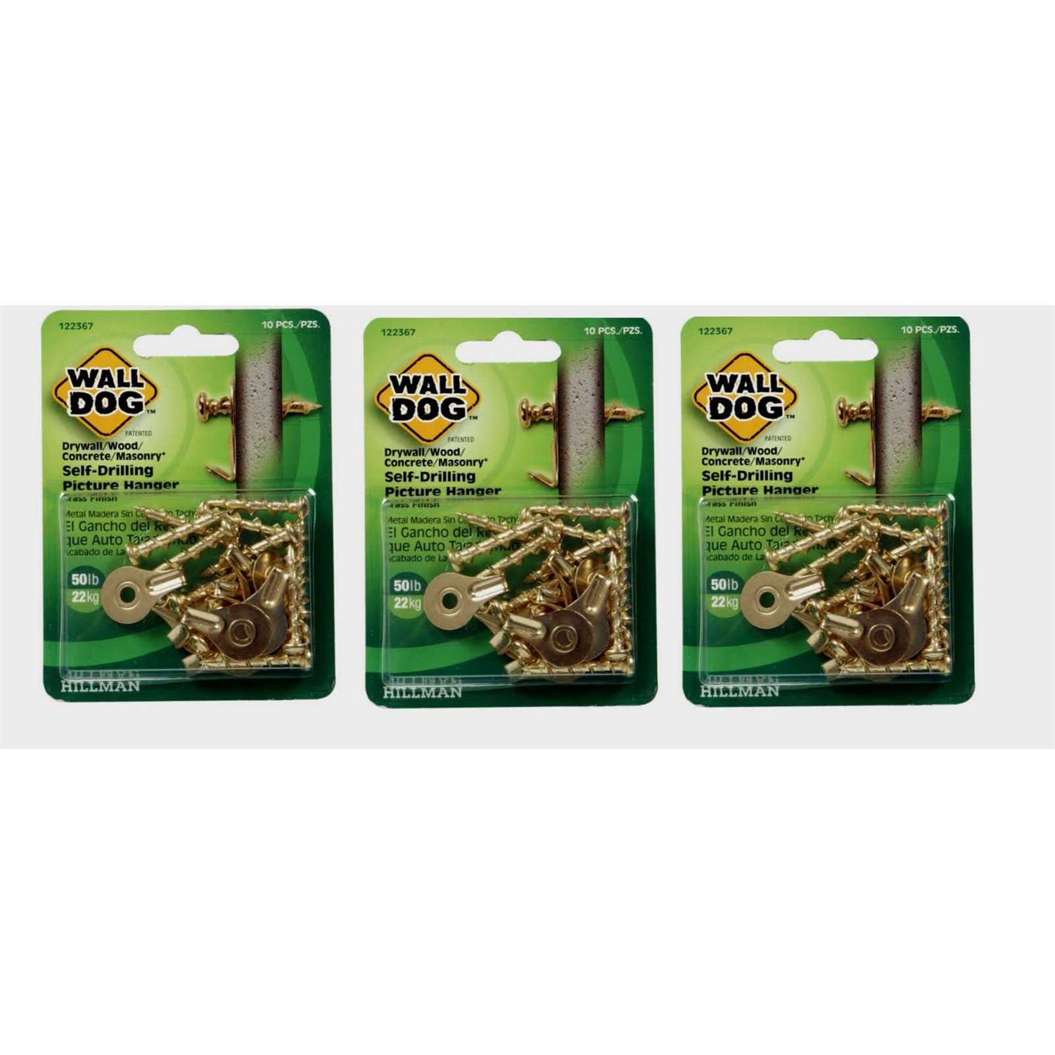 Hillman Wall Dog Self-Drilling Picture Hanger, Brass – 10 pieces