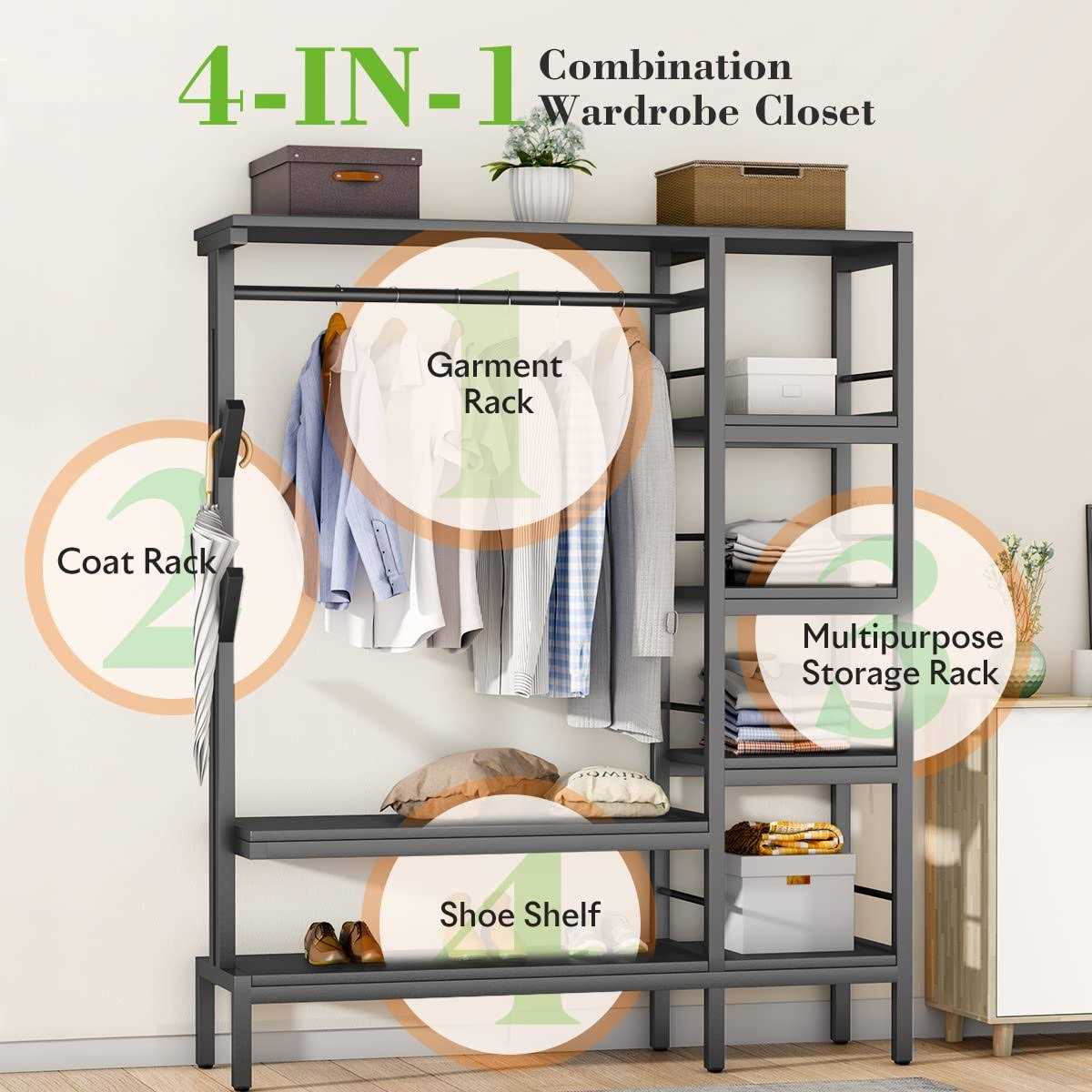 Hokeeper Capacity Heavy Duty Clothes Rack with Shelves Closet Organizer Metal Wardrobe Closet Clothing Rack