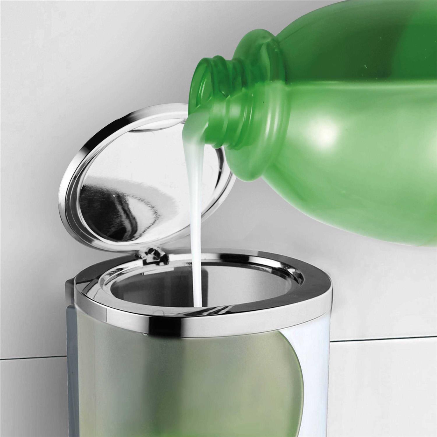 - Dispenses liquid soap, shampoo, lotion, or conditioner