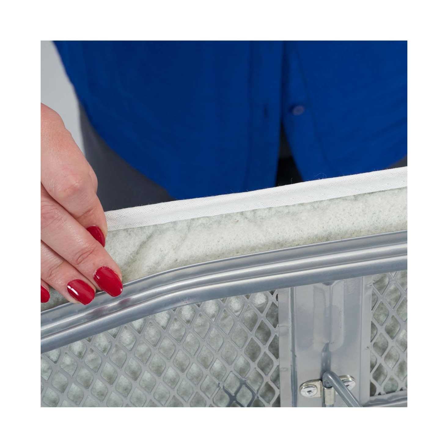 Specially cut to fit the TABLE TOP boards, this 100% cotton cover and 4mm fiber pad, with its one-piece solid construction and resilient, matte-free surface, make ironing smoother and easier. An attached pocket holds your starch and spray bottles close at hand, enhancing your efficiency. The tailored design and bungee cord binding ensures a tight fit, so your cover stays secure. Its classic blue silicone coated finish helps your cover remain stain and scorch resistant, so you can iron worry-free, confident that your board and clothes will last, keeping you and your board looking good! Tailored design and bungee cord binding secures fit. Silicone coated for stain resistance and durability. Dimensions: 12.5 W x 30 to 33 L.
