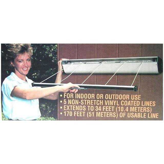 This Household Essentials 5-Line Retractable Clothesline extends up to 34′ which gives you 170′ of drying space to help save space and energy within your home. Household Essentials 5-Line Retractable Clothesline embraces the feel of the beautiful outdoors for your laundry. Benefiting from Nature’s energy, clothes and linens dry naturally on a massive 170 ft of line space. This 5-line system extends to 34′ and releases easily for smooth retraction into a protective aluminum case that keeps the line dry and clean. A tightening knob keeps lines taut and tangle free. Its lightweight and heavy-duty construction make this full size retractable line perfect for outdoor or indoor use. Mount it on a wall outdoors, in the garage or basement, or on the porch.