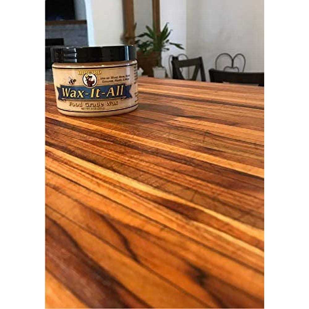 Howard Wax-It-All is a food-grade paste wax that is safe for any surface where food may occur. This thick, smooth blend of beeswax, carnauba wax, and food-grade mineral oil revives faded surfaces and helps protect wood from drying out and cracking. Use Wax-It-All to care for a multitude of surfaces in and around your home. Wax-It-All can be used to shine and protect wood countertop surfaces, concrete, stainless steel, granite, marble, soapstone, slate, and laminate. This innovative product revives faded wood, metal, and plastic furniture, polishes wood and painted cabinets, and helps to prevent tarnishing on metal surfaces.