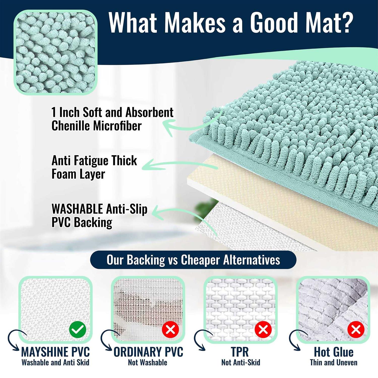 No one likes to walk on a slippery bathroom floor after bath, this mat can quickly absorb moisture from your bare feet when you step on it, leaves your place clean and dry everyday. Many other bath rugs on the market are sewn together loosely leaving large gaps and spaces in between material. It features an exceptionally silky, velvety chenille, perfect for stepping out of the shower or bath. Non-skid backing helps keep mats firmly in place. Durable binding maintains shape for long-lasting use. The color will not fade despite many washing, machine washable, make sure to follow washing instructions. Classic color and never get old in fashion, suitable for most of bathroom style. And you will find this non slip bath mat not only bring you a comfortable experience,also bring the taste of ascension.