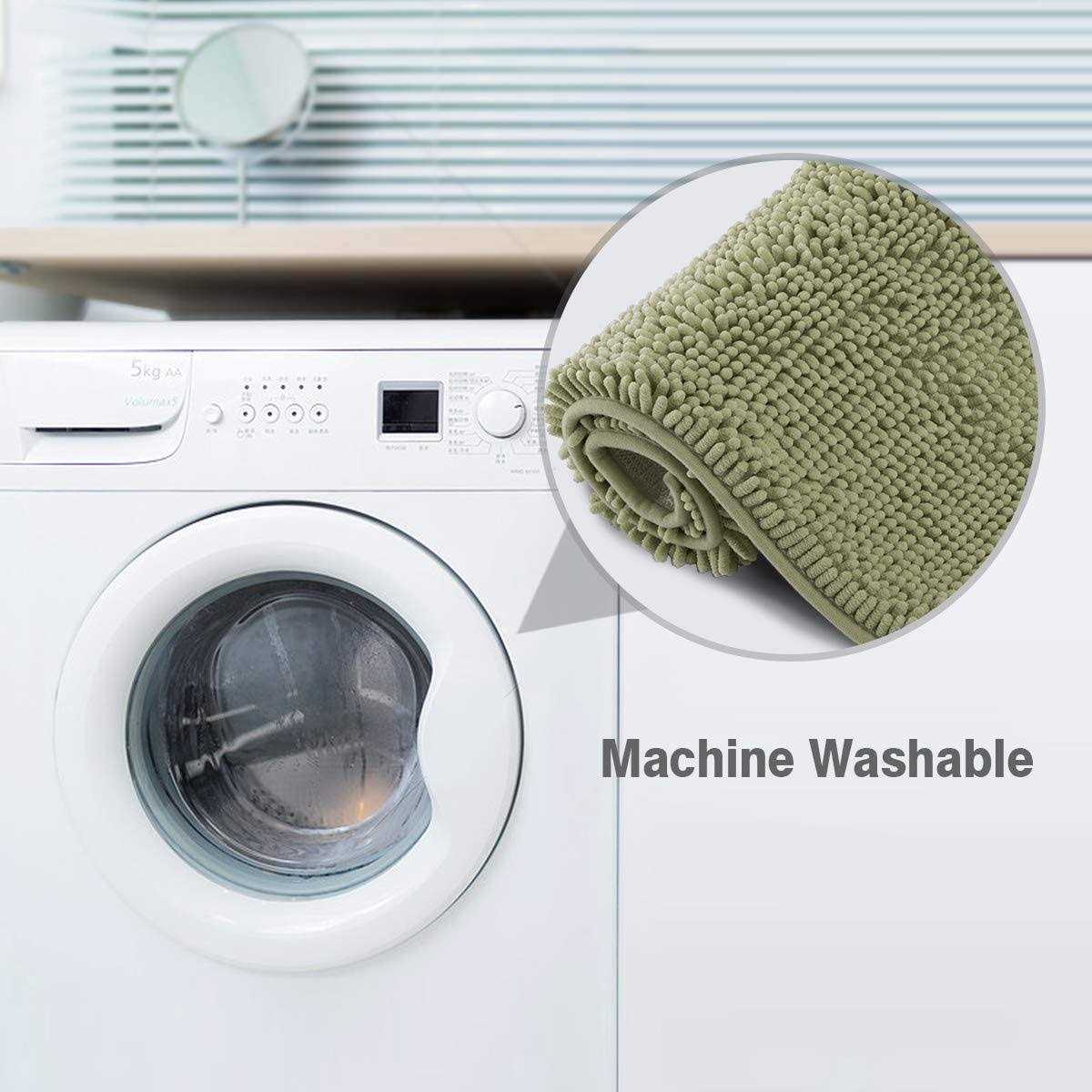 ITSOFT Non Slip Shaggy Chenille Soft Microfibers Bathroom Rug with Water Absorbent, Machine Washable, 21 x 47 Inches Sage Green