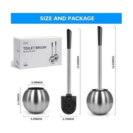 IXO Toilet Brush and Holder 2 Pack, 304 Stainless Steel Toilet Brush with Extended and Durable Comfortable Brush Handle, Toilet