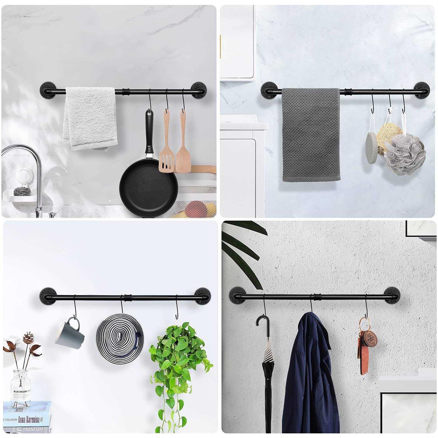 PRODUCT SIZE: Industrial Pipe Towel Bar are spliced using a 3/4 “thread. Support plate 3.45” flange diameter. 28” Towel rod length. Measures: 28.5” L x 3.35” W x 2” H. CONTEMPORARY DESIGN: Based on sturdy and solid steel pipes with rustic influences but elegant look decor. Highlight your taste in your home decoration. EASY TO INSTALL: DIY style without DIY difficulty. ALL of the products come with mounting screws & drywall anchors. Simply screw these together and they will hold firmly for years to come. No glue, cement, or welding needed. NO OIL AND RUST: Jeasor Industrial pipe iron hooks is an electroplated black finish, made of high-quality iron and powder coated pipe to protect against rust and corrosion. MULTIPLE FUNCTIONS: Create storage that’s uniquely suited to your space with this versatile hanging bar. /b – ul li Great do-it-yourself industrial pipe towel bar /li /ul ul li Jeasor industrial towel bar brings the farmhouse style into your bathroom with an eye-catching black electroplated iron /li /ul ul li All the fittings and hardware you’ll need to assemble the industrial style towel bar are included /li /ul ul li Fittings are designed with a black electroplated iron finish that prevents rusting; materials and threads constructed from sturdy malleable iron /li /ul ul li Oil and rust-free /li /ul ul li DIY style towel bar without the DIY difficulty /li /ul ul li Assembled dimensions are 18.5 inch width X 3.45 inch height X 2 inch depth /li /ul p