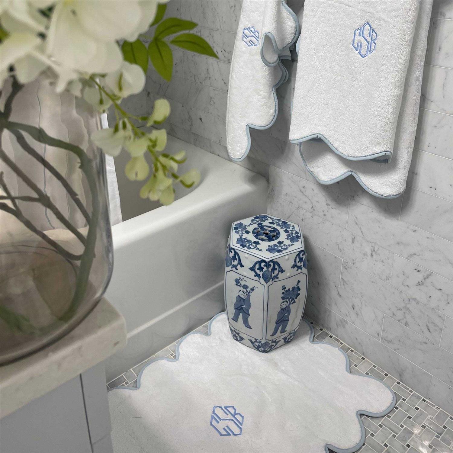 Kassatex Chairish Bath Mats – White / Powder Blue / 22 x 34