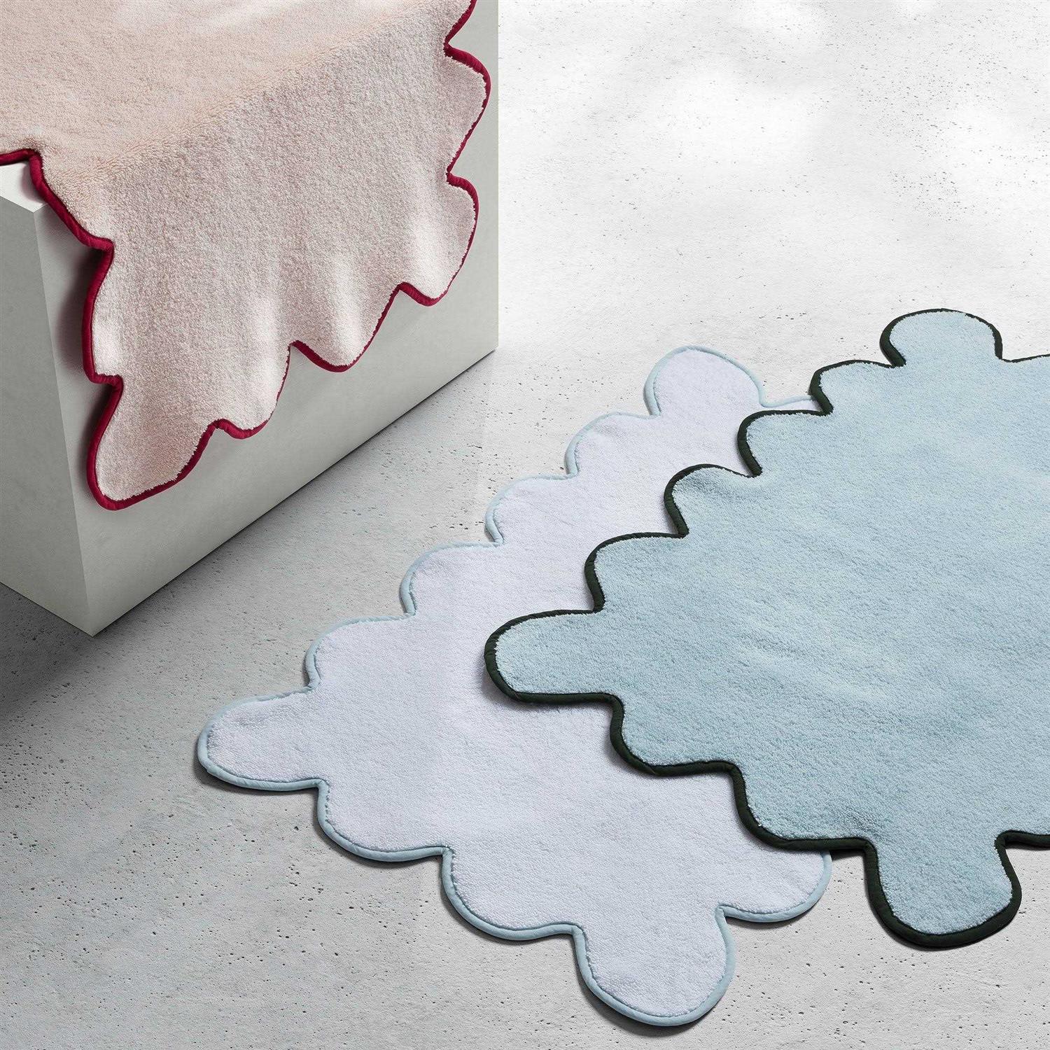 Inspired by the whimsy, ornate, and colorful products found on Chairish. Each bath mat is trimmed with scalloped details and features cottagecore-inspired hues for a collection that keeps toes cozy and adds a pop of juicy sunshine to any bathroom.