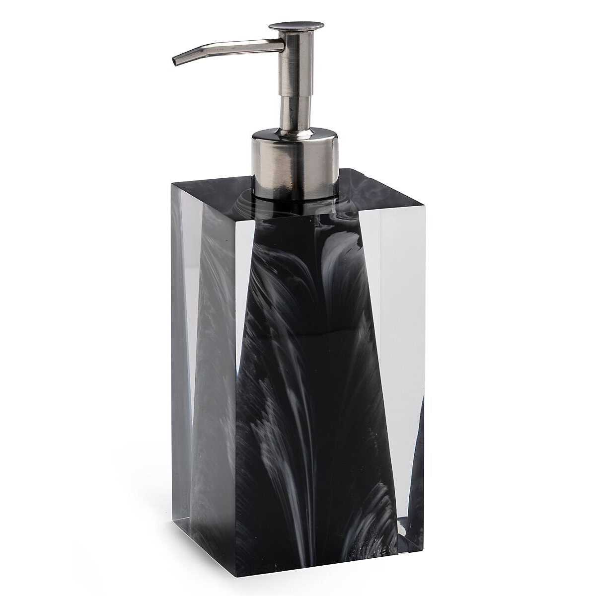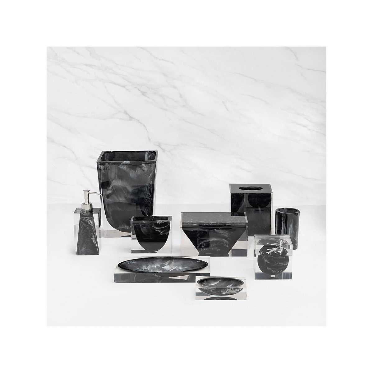 Crafted with ink-injected resin that floats seamlessly in a translucent acrylic encasing, these accessories complete a bathroom that radiates with textural and modern appeal. Acrylic with ink-injected resin.Approx. 2.8″L x 2.8″W x 7.6″HImported.