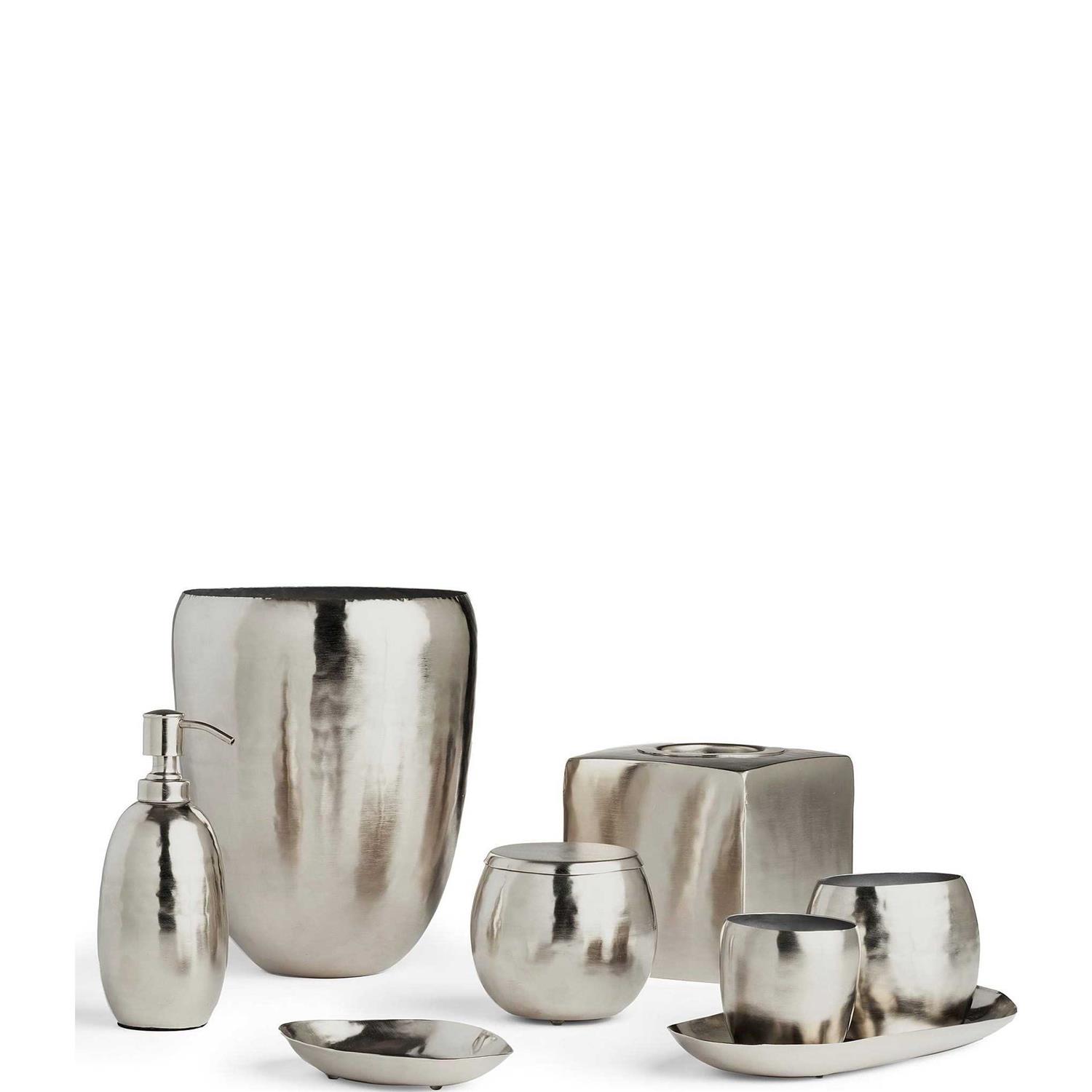 Add regal flair to your bath with our Nile accessories. Crafted from brass, each vibrant piece is fashioned into curved shapes to create an eye-catching design available in two metallic hues of silver or gold.