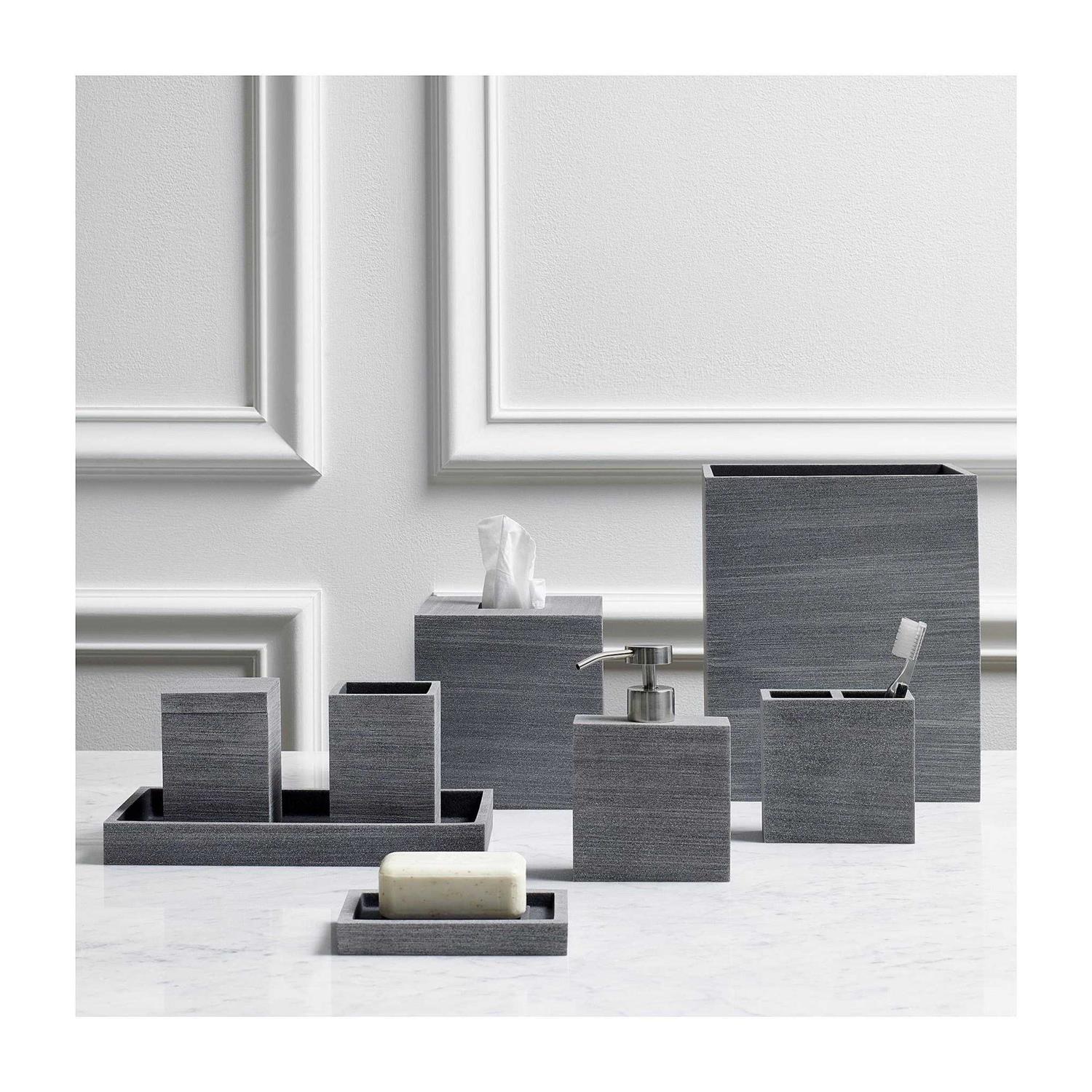From Kassatex, this tissue box holder features: Comprised of solid resin, the grey slate bath accessories feature faint markings that mimic the smooth bluestone alongside a serene pool. Complete your bath design with a collection replete with minimalist and modern styles.slate-inspired resinapprox. 5.63″ L x 5.63″ W x 5.63″ Hhand washImported.
