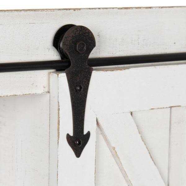 Kate and Laurel Cates Wood Wall Storage Cabinet with Vanity Mirror and Sliding Barn Door Rustic White