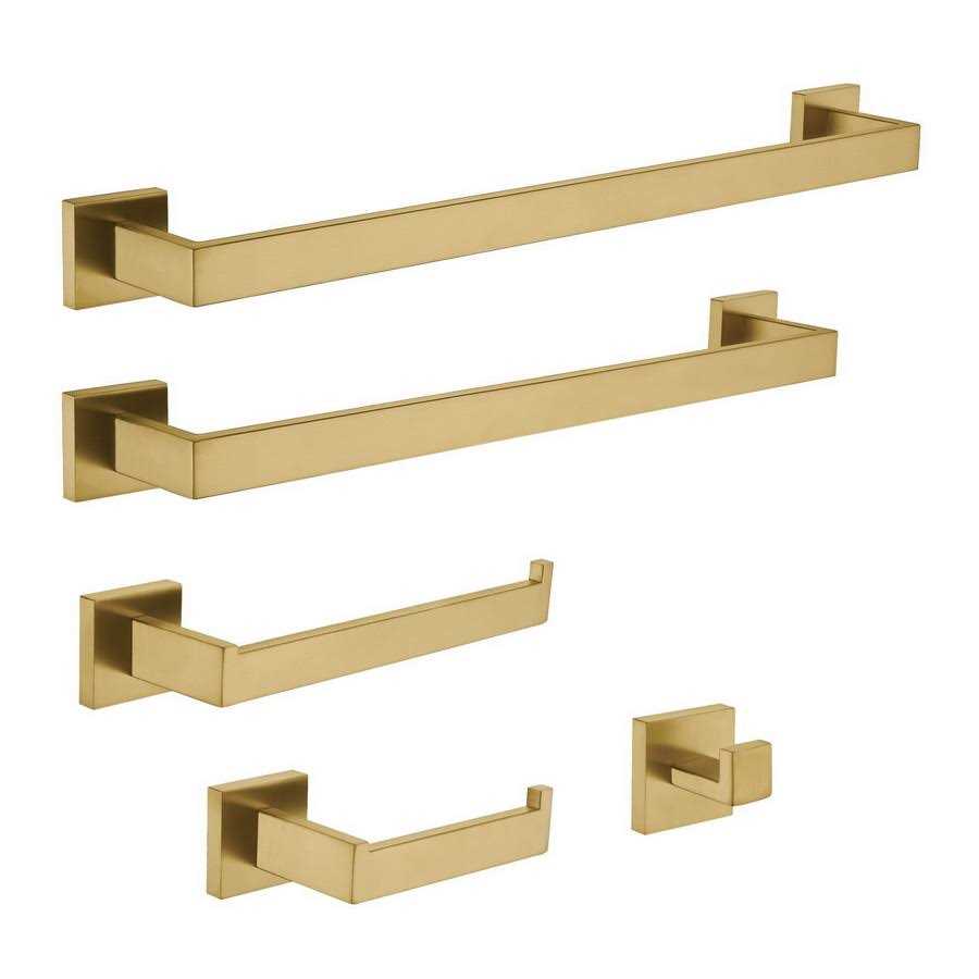 • Includes 24″ towel bar, 18″ towel bar, towel ring, robe hook, toilet paper holder