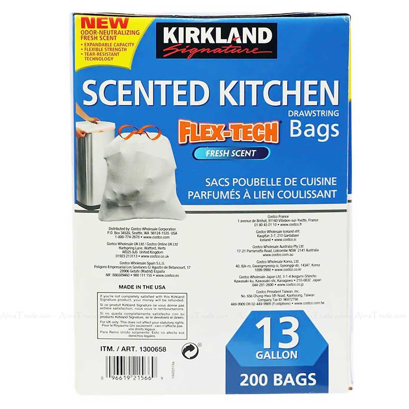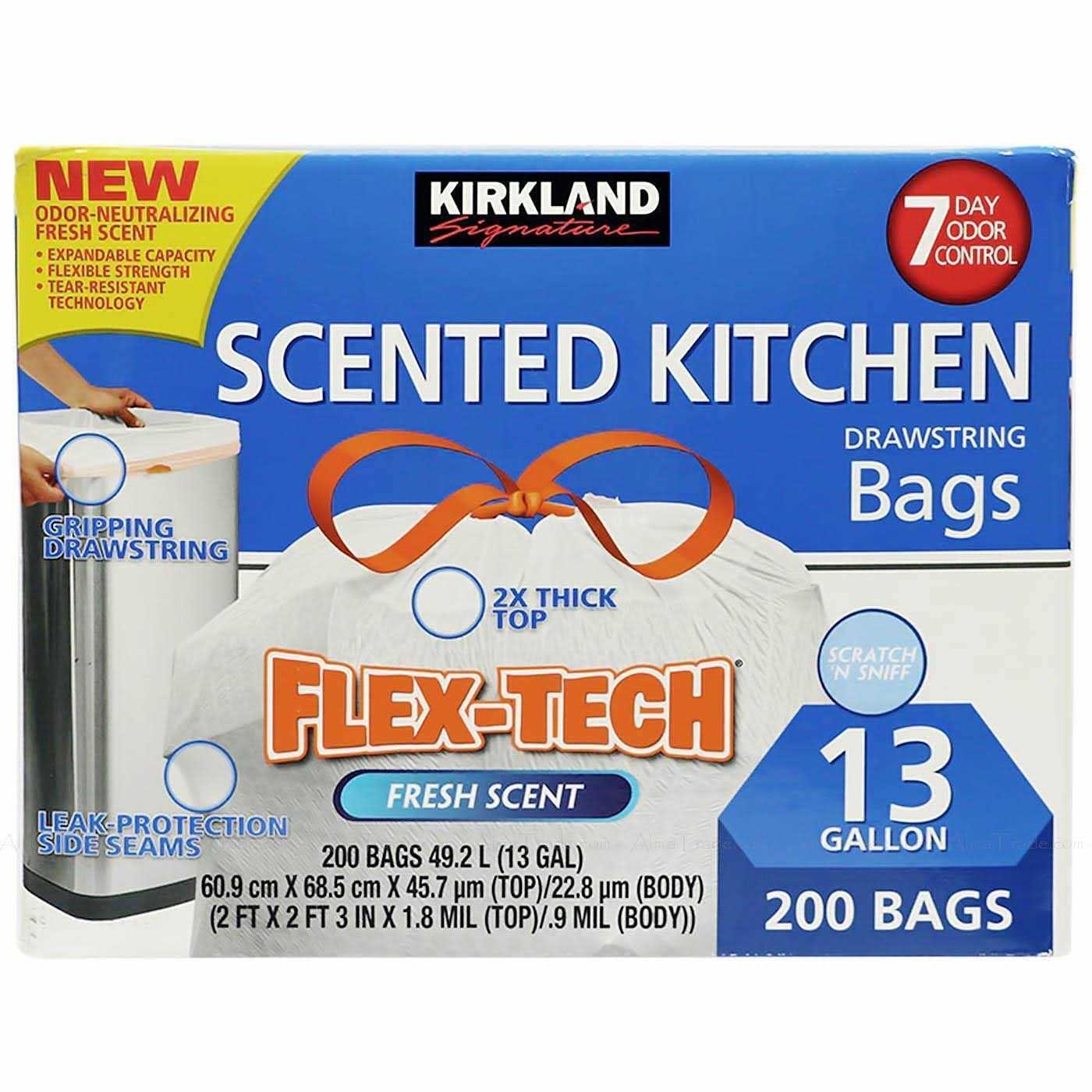 Kirkland Signature Flex-Tech 13-Gallon Scented Kitchen Trash Bags – 200 Count