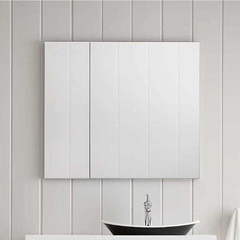 - Rust-free aluminum construction with full-overlay mirrored door.