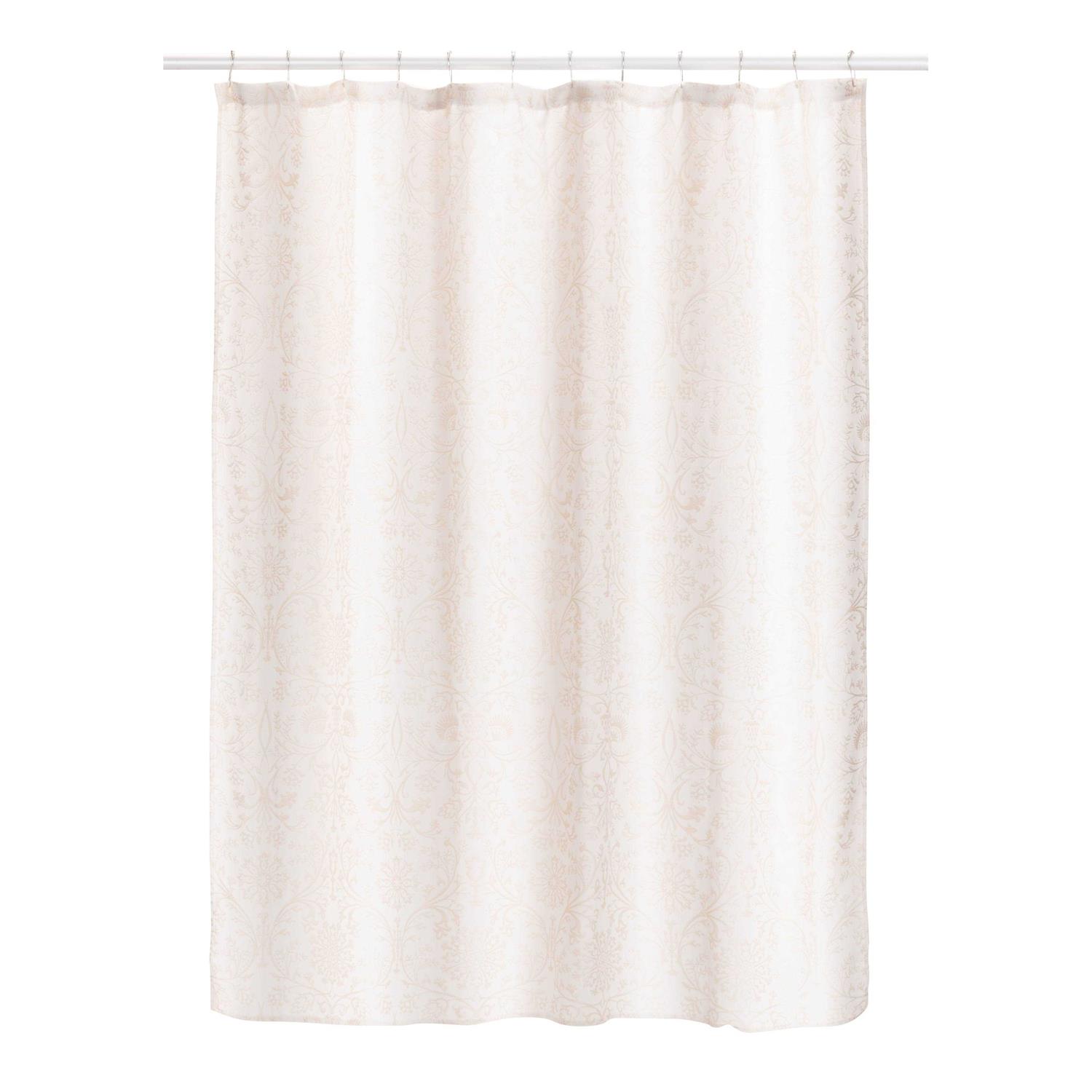 Effortlessly give your bathroom a makeover with the Laura Ashley Jacquard Shower Curtain Collection. Each on-trend shower curtain easily provides a stylish update to any bathroom in your home. Durable, machine washable fabric in neutral and patterns colors makes these sets as fashionable as they are functional. Shower curtains fit a standard curtain rod. Vinyl curtain liner and hooks recommended (both sold separately). Machine wash cold, delicate cycle with detergent. Do not bleach. Tumble dry low. Cool iron if needed. L. Imported. Color: Taupe.