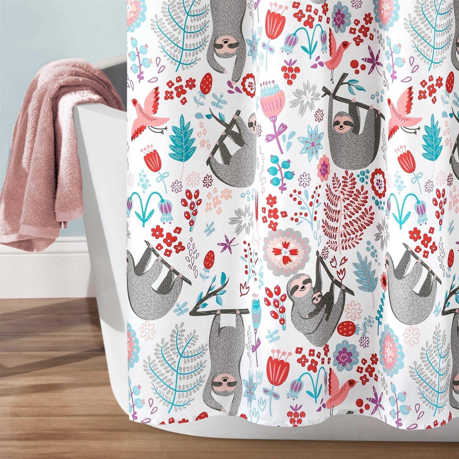 Lush Decor Hygge Sloth Shower Curtain (White)