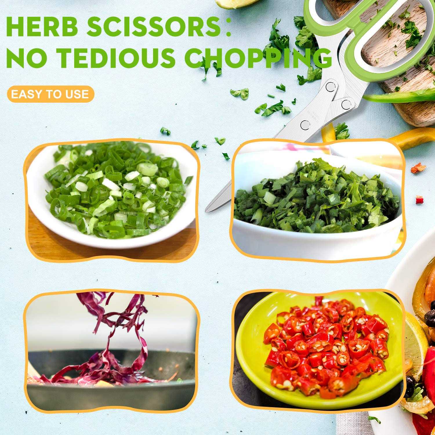 Poromi Updated 2022 Herb Scissors Set – Cool Kitchen Gadgets for Cutting Fresh Garden Herbs – Herb Cutter Shears with 5 Blades and Cover Sharp and Ant