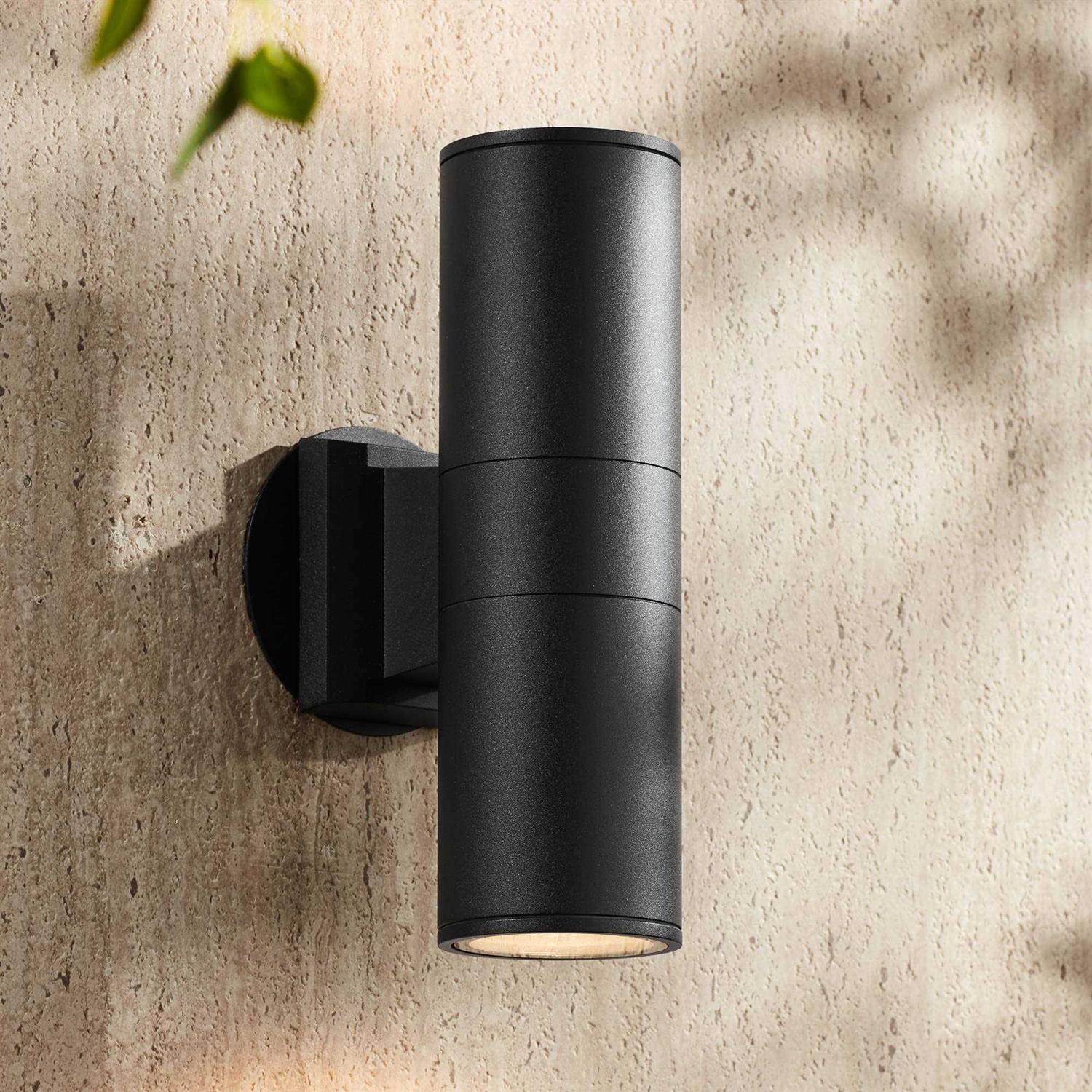 Possini Euro Design Modern Outdoor Wall Light Fixture Black 11 3/4″ Cylinder Up Down Exterior House