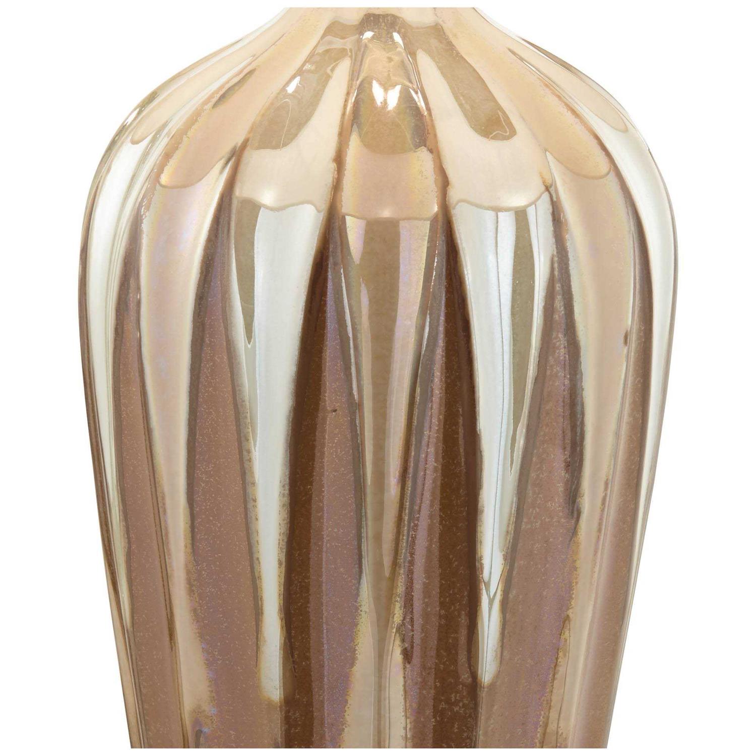 - Hand-applied ivory drip ceramic glaze. Each lamp will vary slightly in color and pattern. Round acrylic accent at the very bottom.