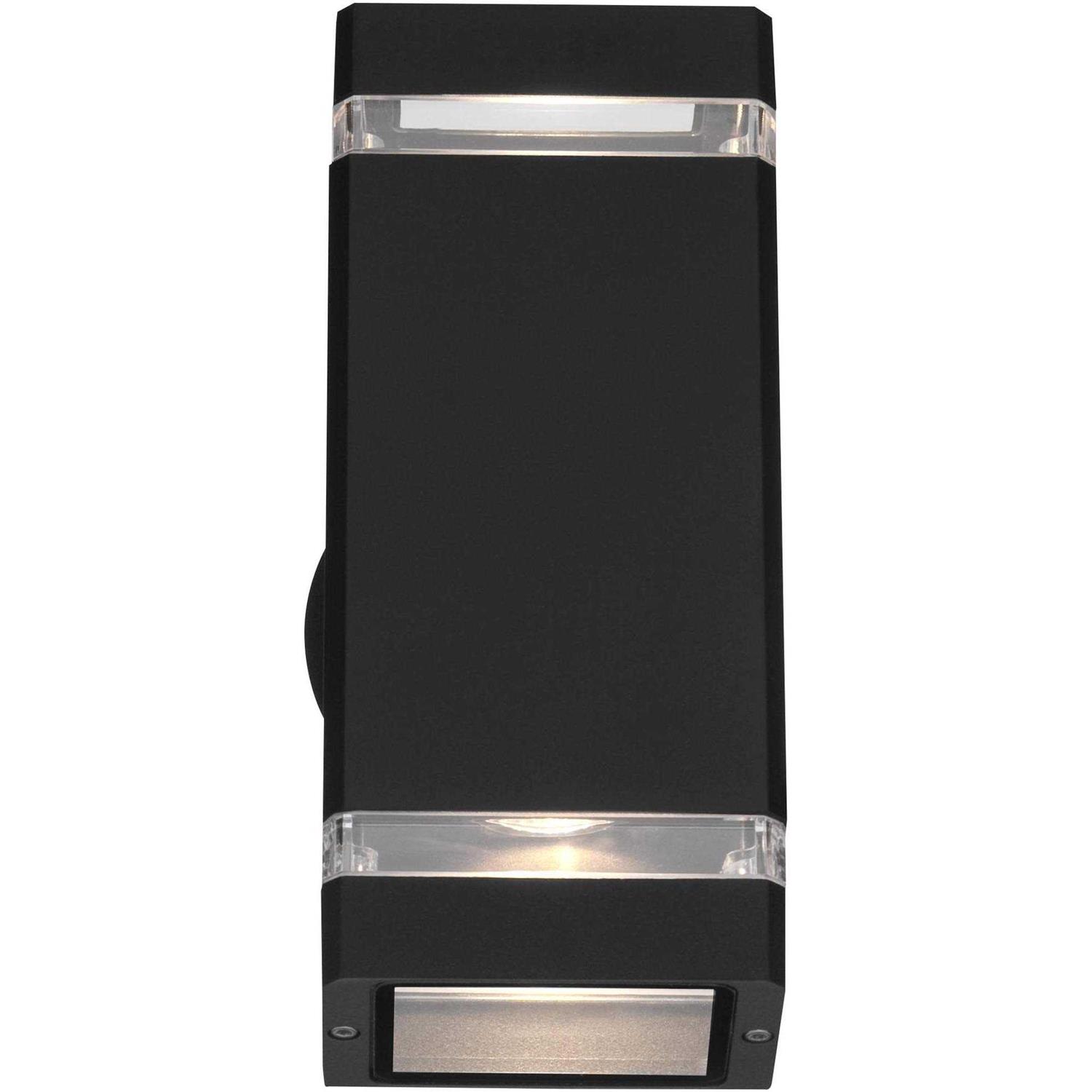 Outfit a contemporary space with this outdoor wall light from the Skyridge collection by Possini Euro Design. It comes in a sleek rectangular frame with a black finish and clear glass accents for a dash of visual interest. Specially designed to shine light from both ends, this fixture can be installed vertically or horizontally to best suit your decorating needs.