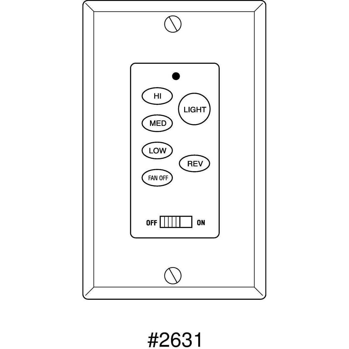 This fully functional wall transmitter greatly simplifies controlling your ceiling fan. It can be used with or in place of a remote control. It has an on/off switch and four choices for fan speed settings. The light control makes it easily to illuminate your room while keeping room temperatures at a comfortable level. This ceiling fan accessory includes a switch plate cover and is available in white.