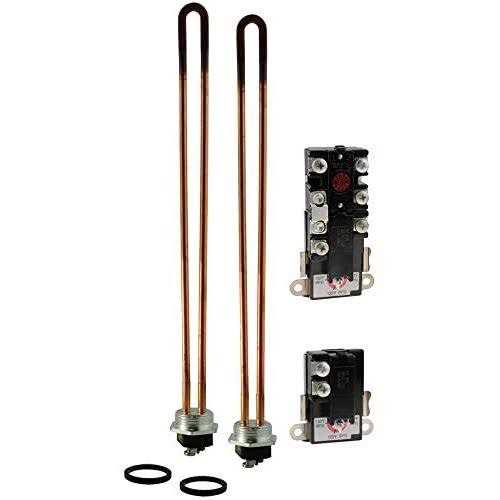 Repair your water heater rather than replace it with the Rheem PROTECH Electric Water Heater Tune-Up Kit. This OEM quality Electric Water Heater Tune-Up Kit provides a quick and easy way to replace the most common problem items on an electric water heater. The tune up kit helps prolong the life of your water heater by renewing the electrical components of your water heater. The kit includes two 4,500-watt, 240-volt water heater High Watt Density screw-in elements with gaskets, 1 Therm-O-Disk 240-volt lower thermostats and 1 Therm-O-Disc upper thermostat. For use with many 2-element water heaters (sold separately) Direct replacement for Rheem, Ruud and Richmond water heaters Fits most brands including American, AO Smith, Bradford White, Craftmaster, General Electric, GS Wood, Kenmore, Lochinvar, Maytag, Mor-Flo, Reliance, Sears, State and Whirlpool water heaters OEM heating elements use patented resistored technology that helps increase the life of the tank and element Hairpin-bend tubular elements are sealed into a watertight screw plug for uniform heat distribution, energy efficiency and long-lasting performance Helps you repair or renew an electric water heater system Upper and lower thermostats have the high electrical capacity required by electric water heaters Thermostats include a temperature-sensitive bimetal disc to deliver snap action to the contacts UL and CSA listed for safety