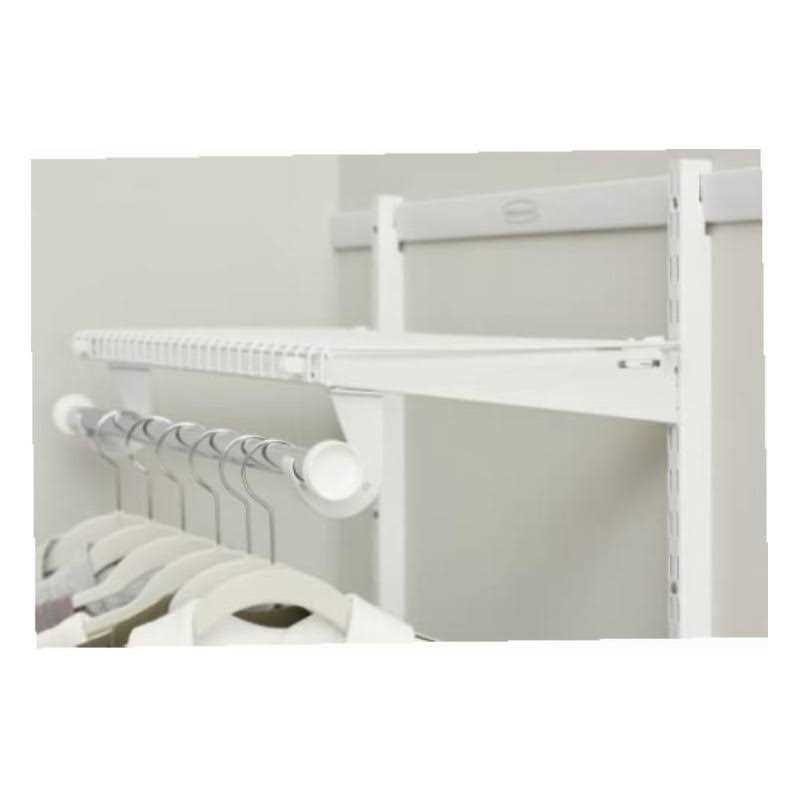 Make the most of your space with the Rubbermaid Expandable Closet Kit. Designed for better organization and maximizing space, this 2-4 ft. kit includes closet shelving and rods that adjust for a custom fit. Installation is simple without any cutting required so you can quickly and easily create a closet space that suits your needs.